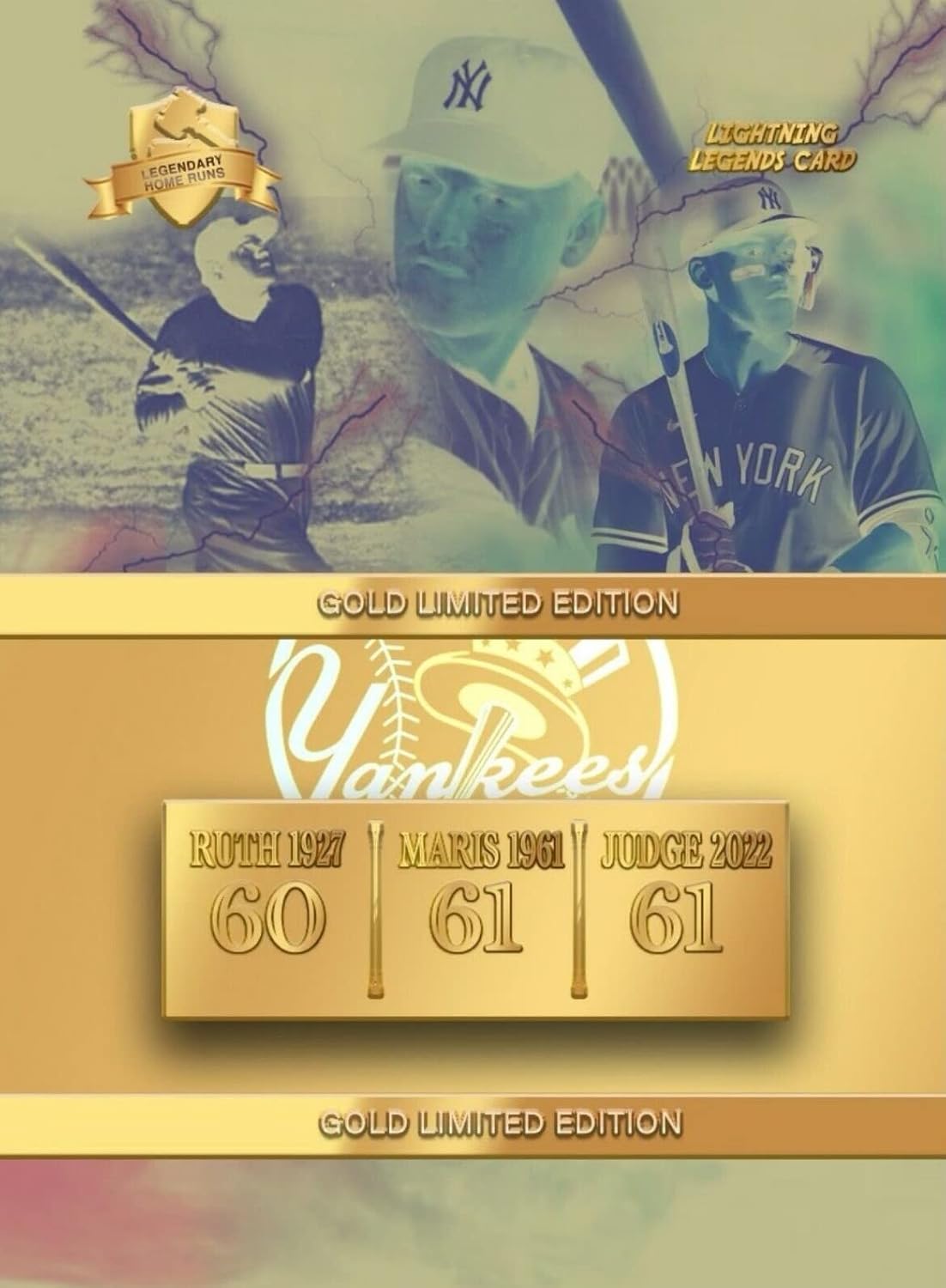 AARON JUDGE, ROGER MARIS, BABE RUTH Commemorative Baseball Card CUSTOM Made Novelty Baseball Card Depicting His Record Tying 61 HOME RUNS! – New York Yankees – Passes Babe Ruth, Ties Roger Maris with 61 Homeruns 09/28/2022