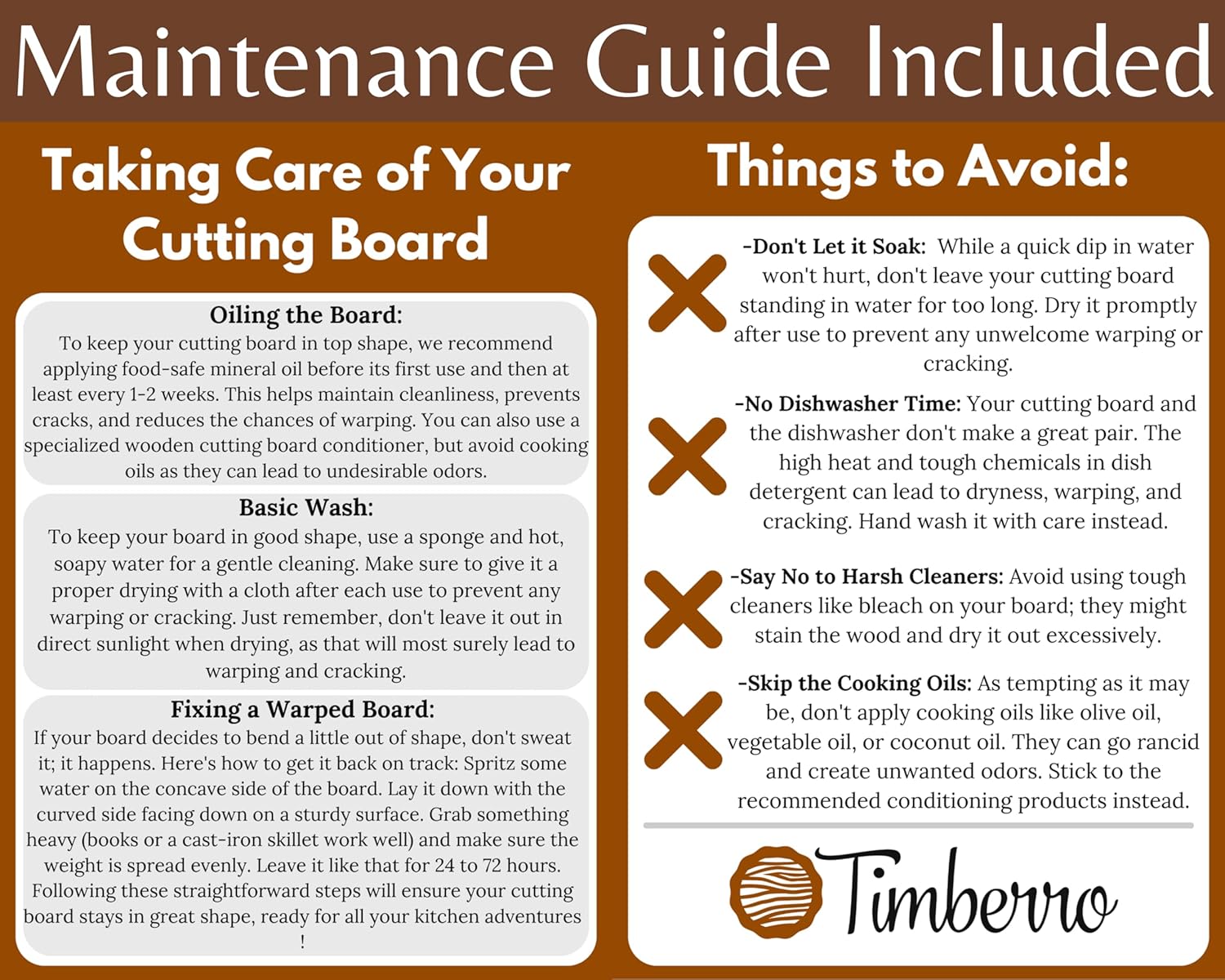 Care Instructions Included: We’ve got you covered! Your cutting board comes with simple care tips to help it stay in great shape for years to come.