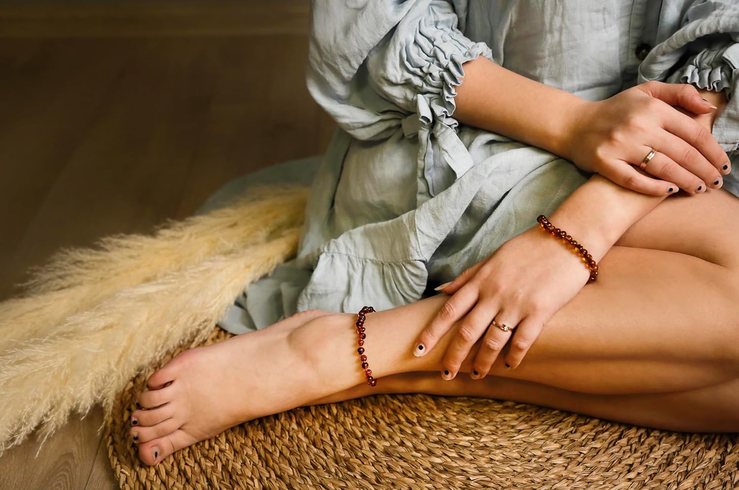 Baltic Proud Natural Baltic Amber Bracelet for Adults (Women/Men – Unisex) Cognac Polished color – Hand made From Raw-Unpolished/Certified Baltic Amber Beads