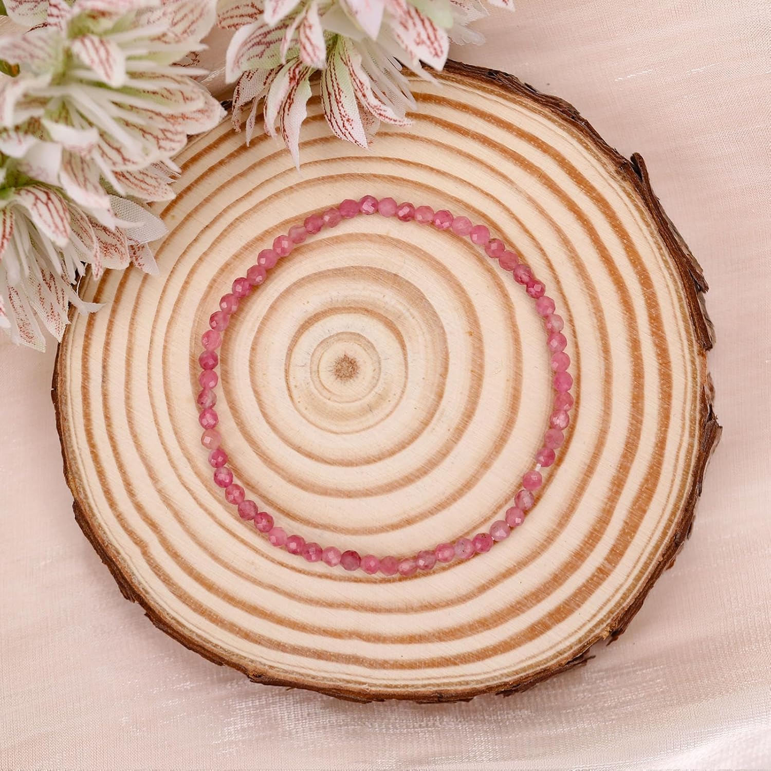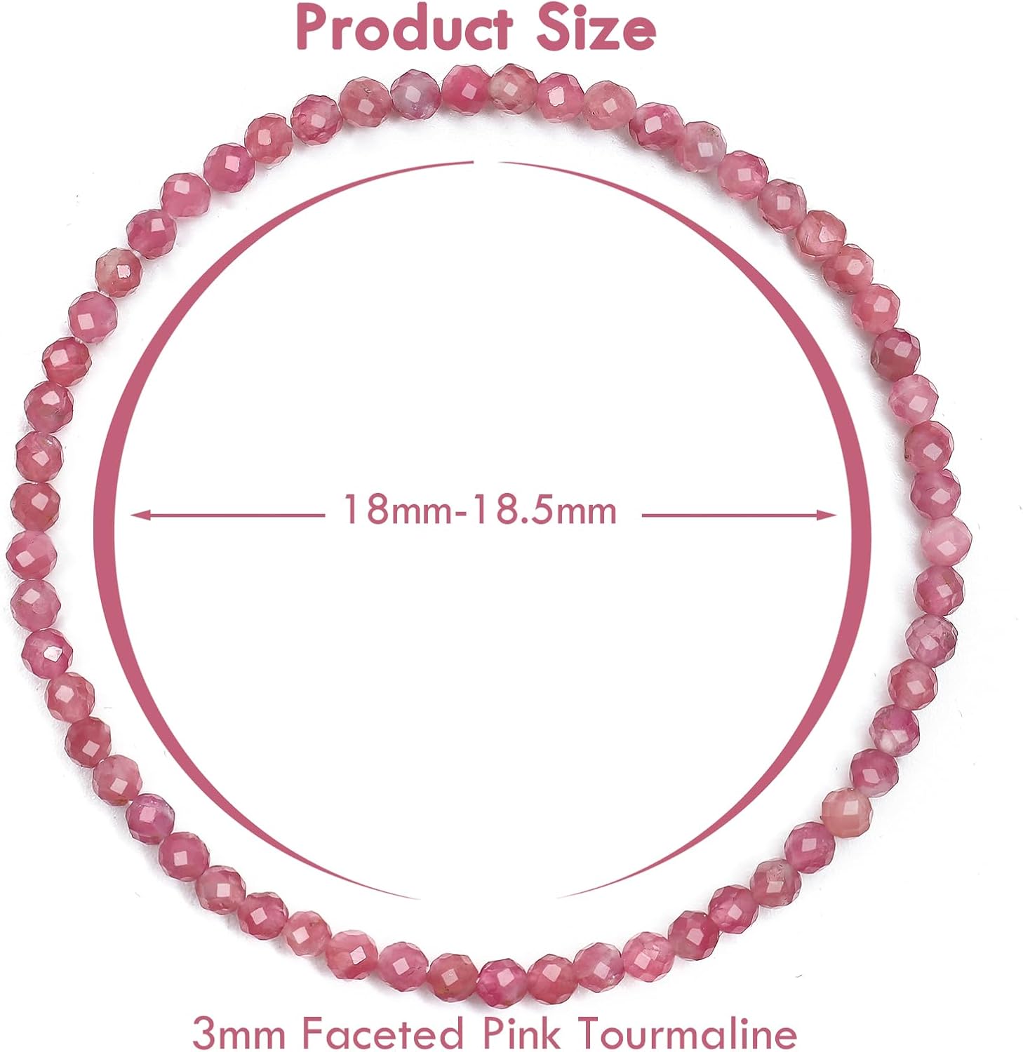 BONNY BOXX Natural Genuine Gemstone Faceted Round Beads Bracelets, 3mm Adjustable Stretchy Tiny Faceted Black Tourmaline Bracelet, Healing Crystal Reiki Chakra Dainty Jewelry Fashion Gifts