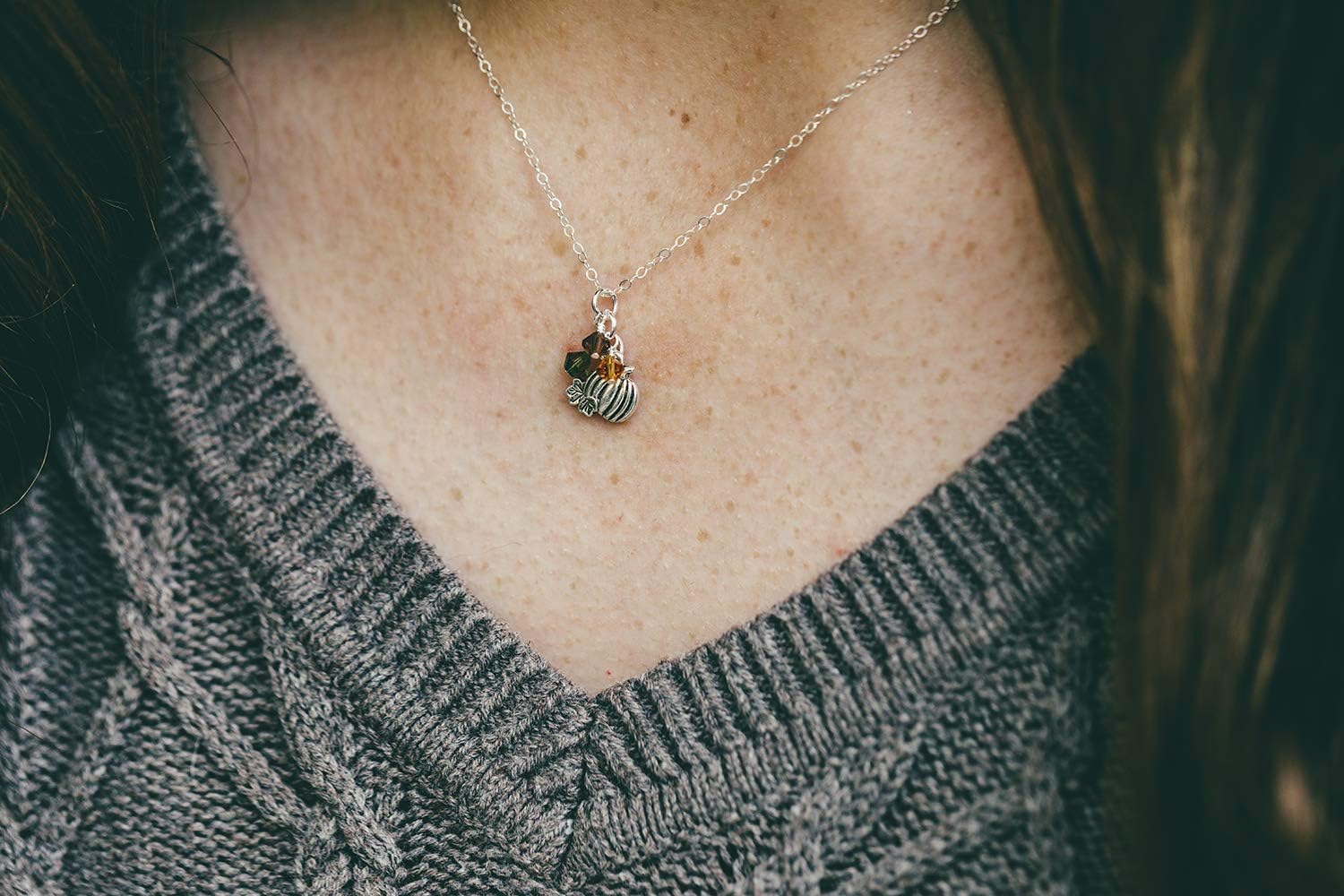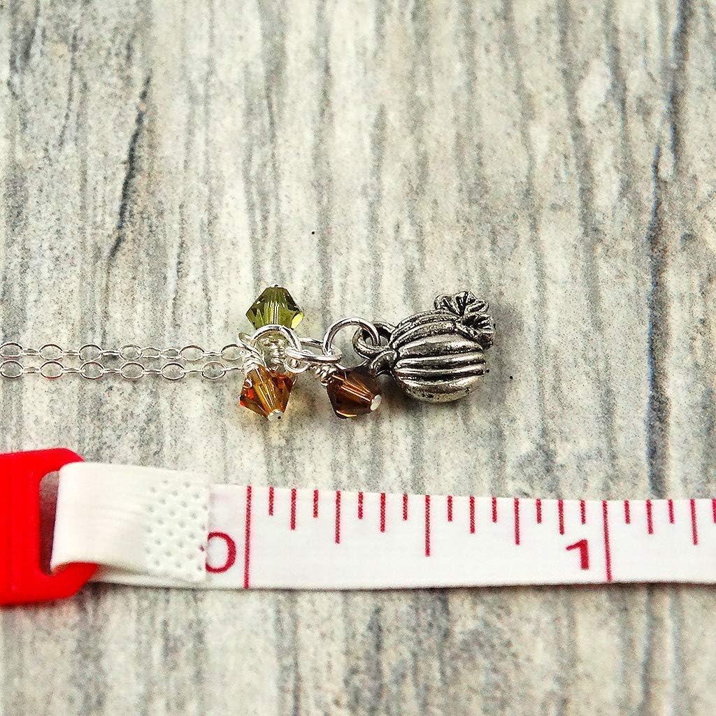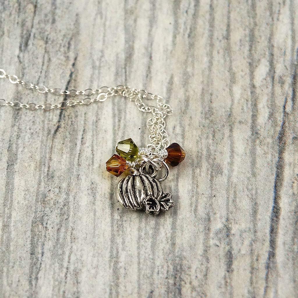 Designed by Stacey Handmade Tiny Pumpkin Pendant Necklace, Fall Colors Austrian Crystal, Jewelry Gifts for Women, September Birthday, Halloween, Wedding, Autumn, 16 to 18″ Adjustable Length