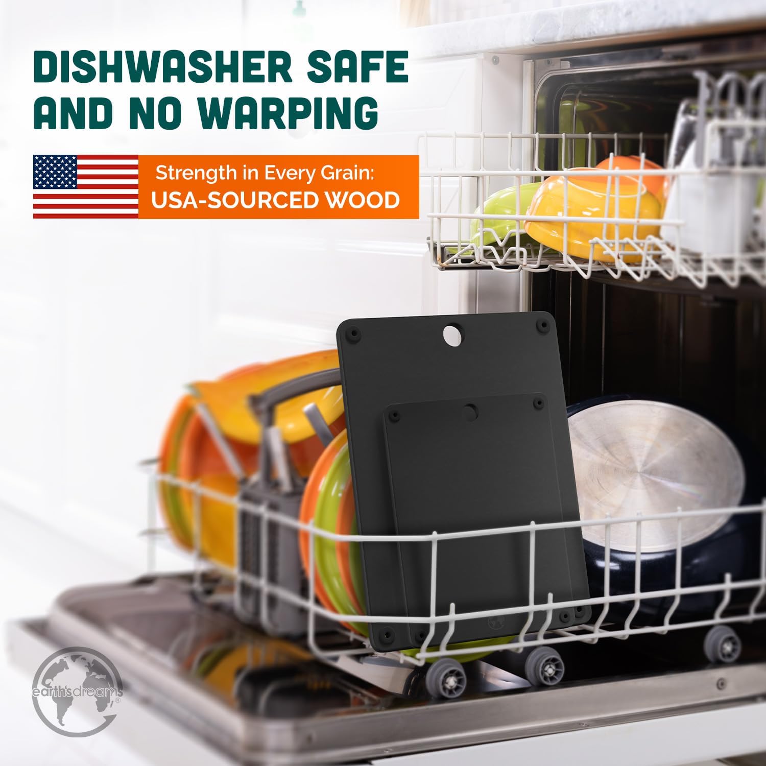 WOOD COMPOSITE CUTTING BOARDS – This set is the best cutting boards for kitchen set you can get! Made from high-temperature-pressed paper composite material from wood fiber, they offer durability & efficiency without water absorption. This helps prevent cracks, splinters, peels, & even odors over time. Lightweight Dishwasher Safe Alternative to Bamboo