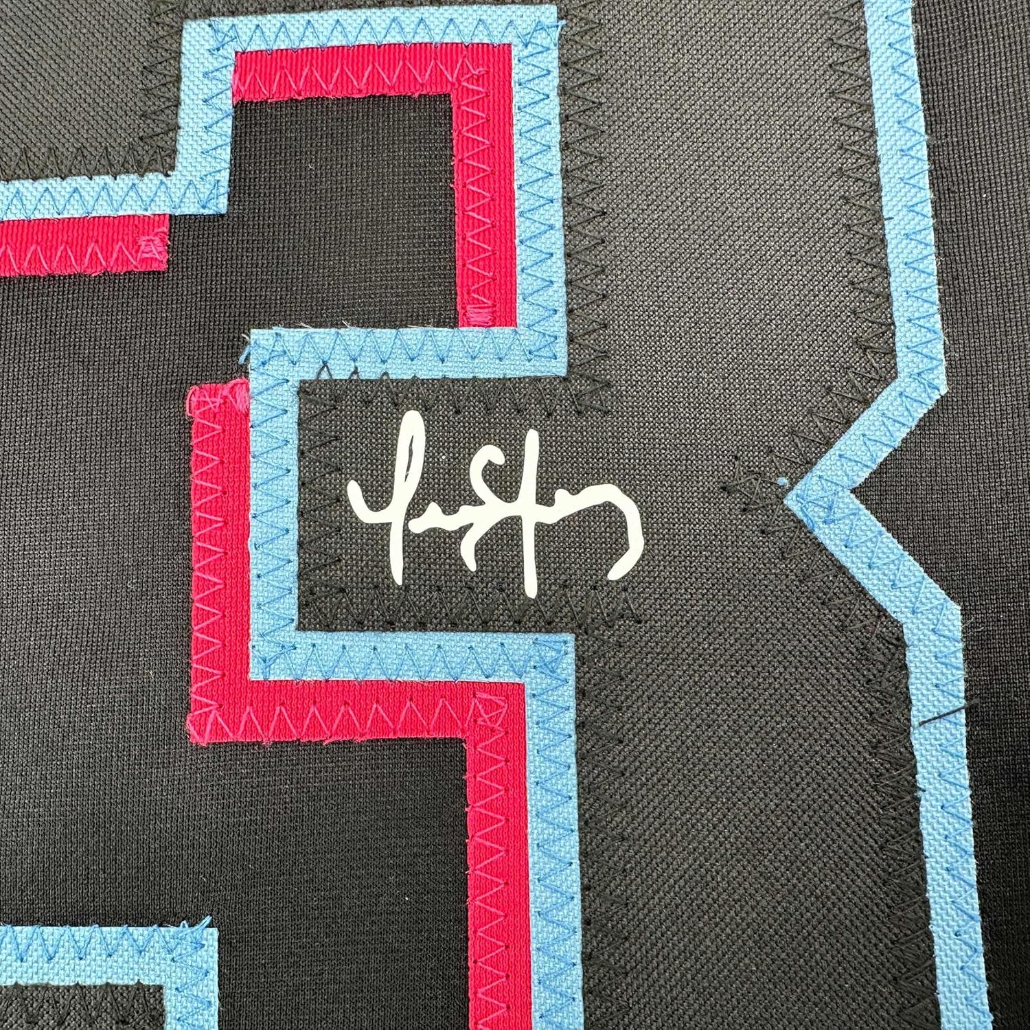 Facsimile Autographed Luis Arraez Miami Black Reprint Laser Auto Baseball Jersey Size Men’s XL