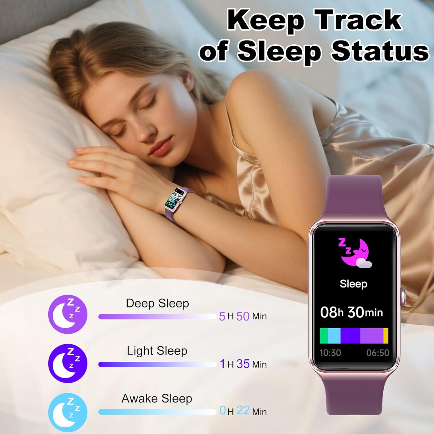 【Health Metrics Monitoring】These thoughtfully designed fitness watches for men and women come equipped with 24/7 heart rate, blood oxygen, blood pressure monitoring, and advanced sleep tracking. You can conveniently check your real-time health data anytime, right from your wrist, and review detailed daily records in the companion app. The sleep tracker carefully monitors your time in different stages — including REM, light sleep, deep sleep, and wakefulness — helping you gain a clearer understanding of your overall sleep quality.