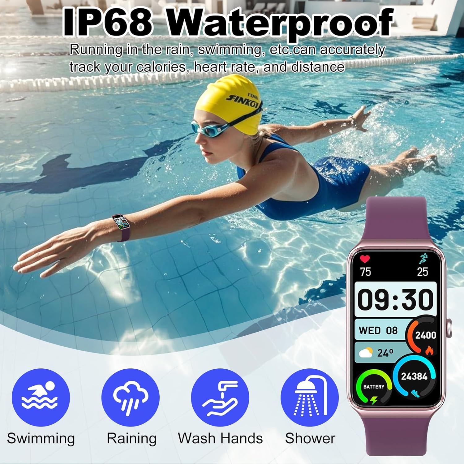 【Ultra-Long Battery Life & IP68 Waterproof】Charging is simple with the magnetic USB cable, and a full charge takes approximately 1.5–2 hours. Enjoy up to 6–7 days of heavy usage or 10–12 days of regular use, with a standby time of up to 30 days. This smartwatch is also IP68 waterproof rated, so it’s perfectly safe to wear while washing hands, showering, swimming, or even caught in the rain.