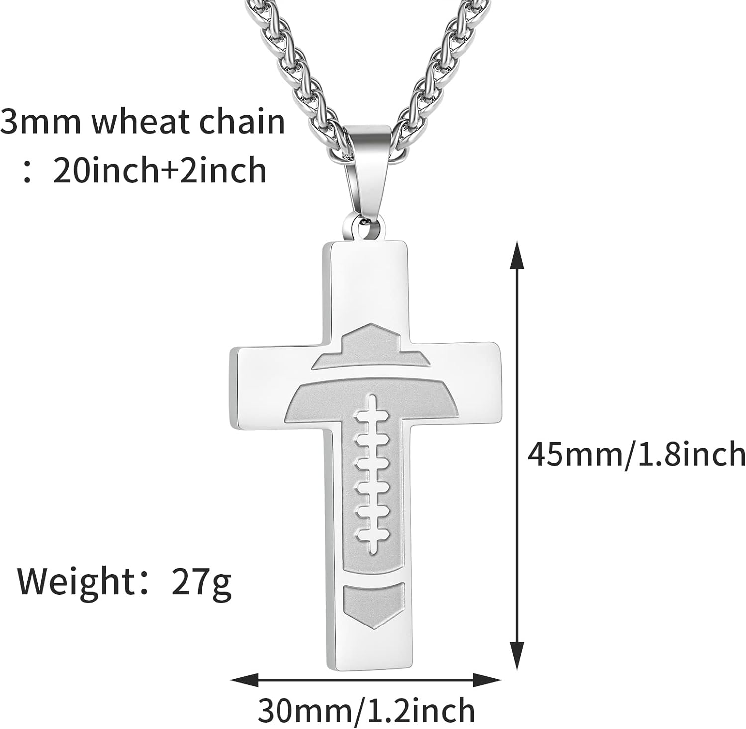 Football Cross Necklace for Boys Men Stainless Steel Bible Verse Pendant with 20+2 Inch Chain First Communion Baptism Religious Sports Jewelry Gift