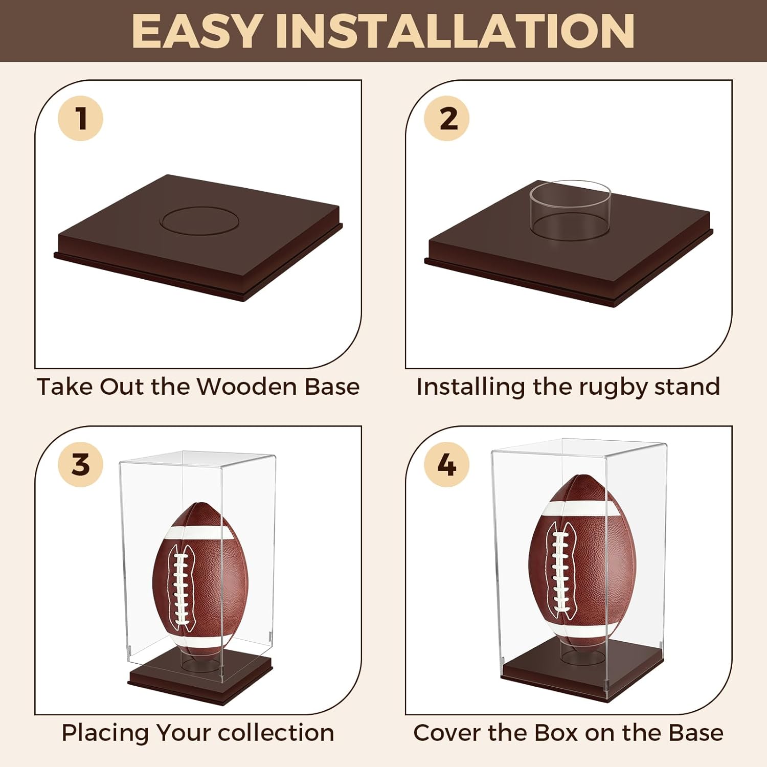Premium Acrylic Clarity & UV Protection: Made from high-transparency clear acrylic, this football display case offers 360° full visibility to showcase your autographed or collectible football. The UV-protective material prevents fading and yellowing, keeping your memorabilia in pristine condition for years.