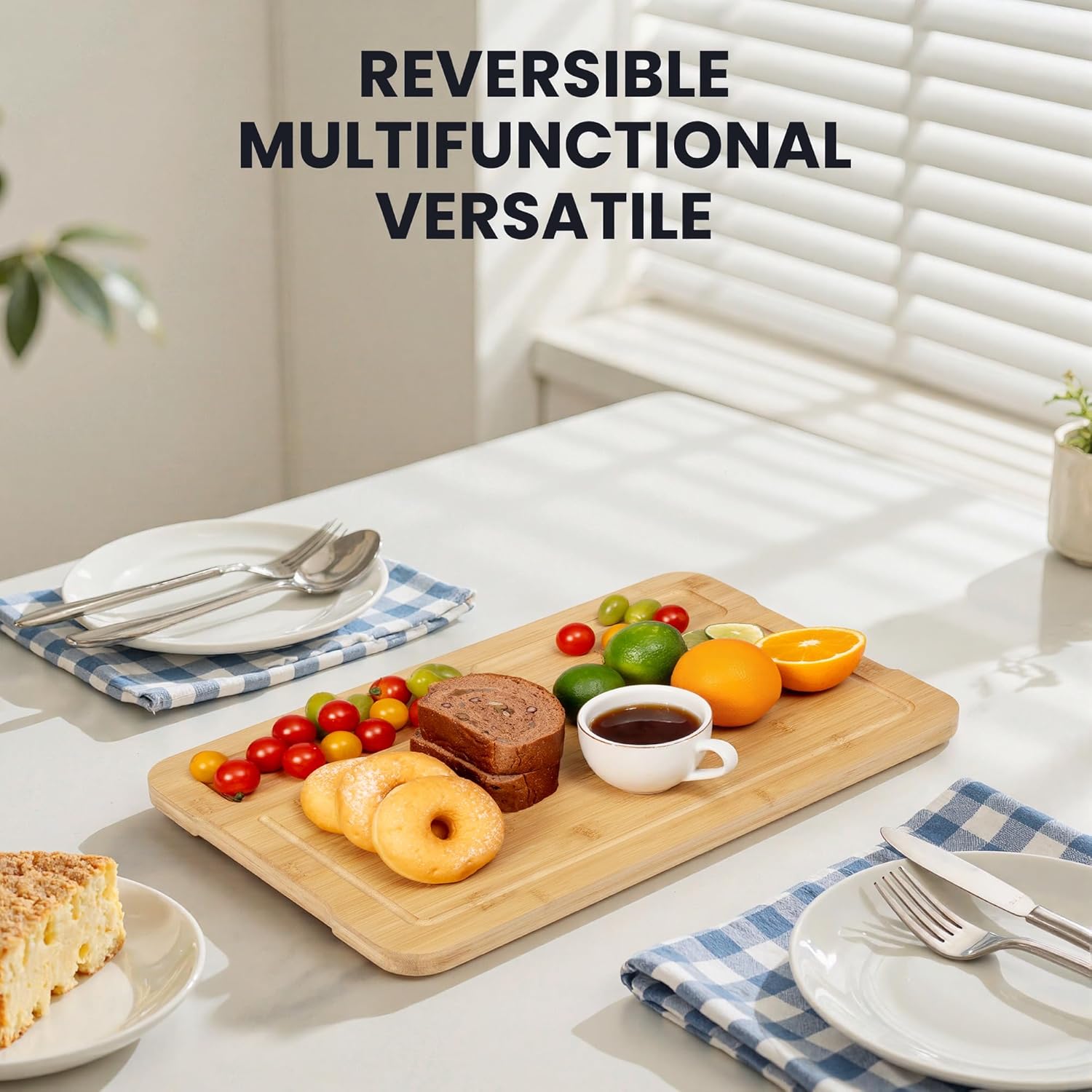 [Multi-Purpose Wood Cutting Board] – Elevate your kitchen with Heimlove large chopping board, designed to meet all your food prep needs. The inside handles effortlessly transform it into a stylish serving tray for entertaining guests. With a unique reversible design, you can easily flip it over to separate raw and cooked ingredients, ensuring safe and efficient meal preparation