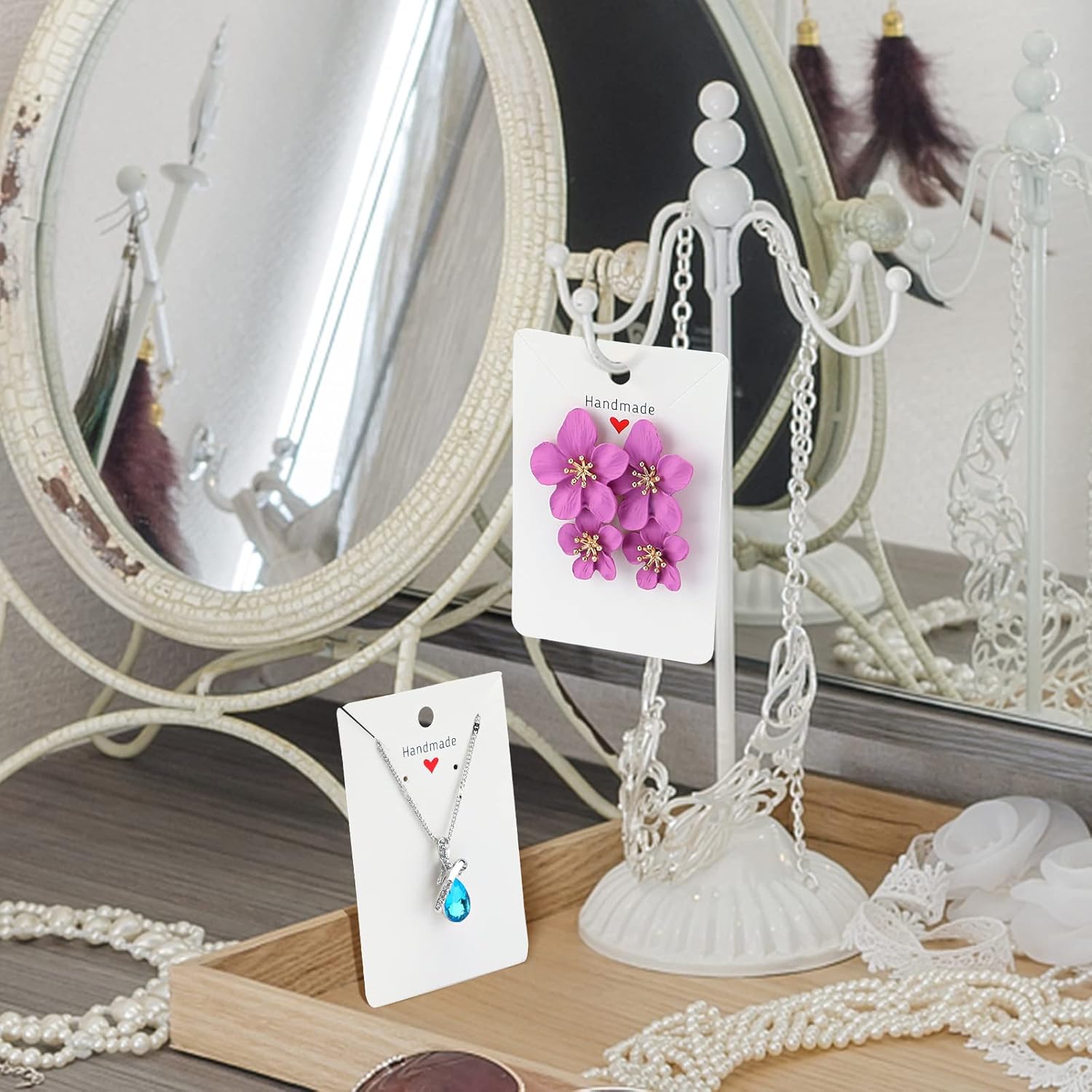 [100Pcs Necklace Display Cards] – Includes 100pcs blank jewelry display cards. Ever tags measures about 3.5″ x 2.4″/9cm x 6cm. Earring wrapper cards with pierced holes for displaying earrings and necklaces. The earring cards have holes at the top for display hanging.