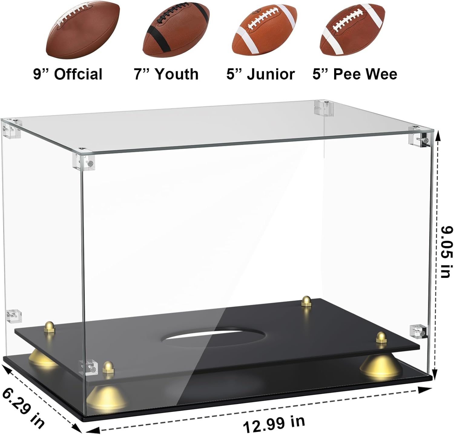 Finally, place the clear box on the black base, and the football display case is ready to use.