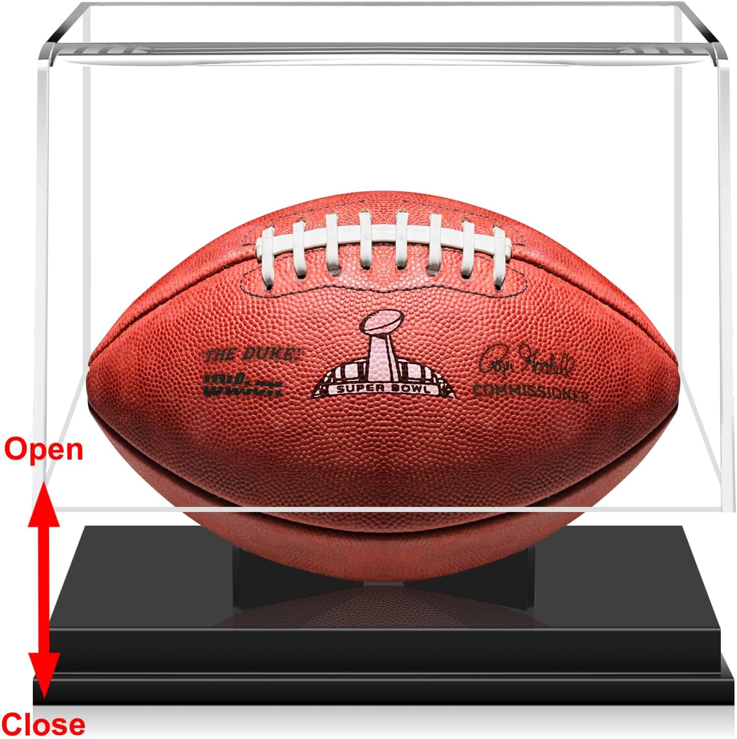 No Assembly Required: No assembly is required for the football display case, which comes in three separate pieces: the removable internal football display stands, the black base, and the clear cube. With no installation required for the clear cube, simply lift it up and place your football inside for a hassle-free setup
