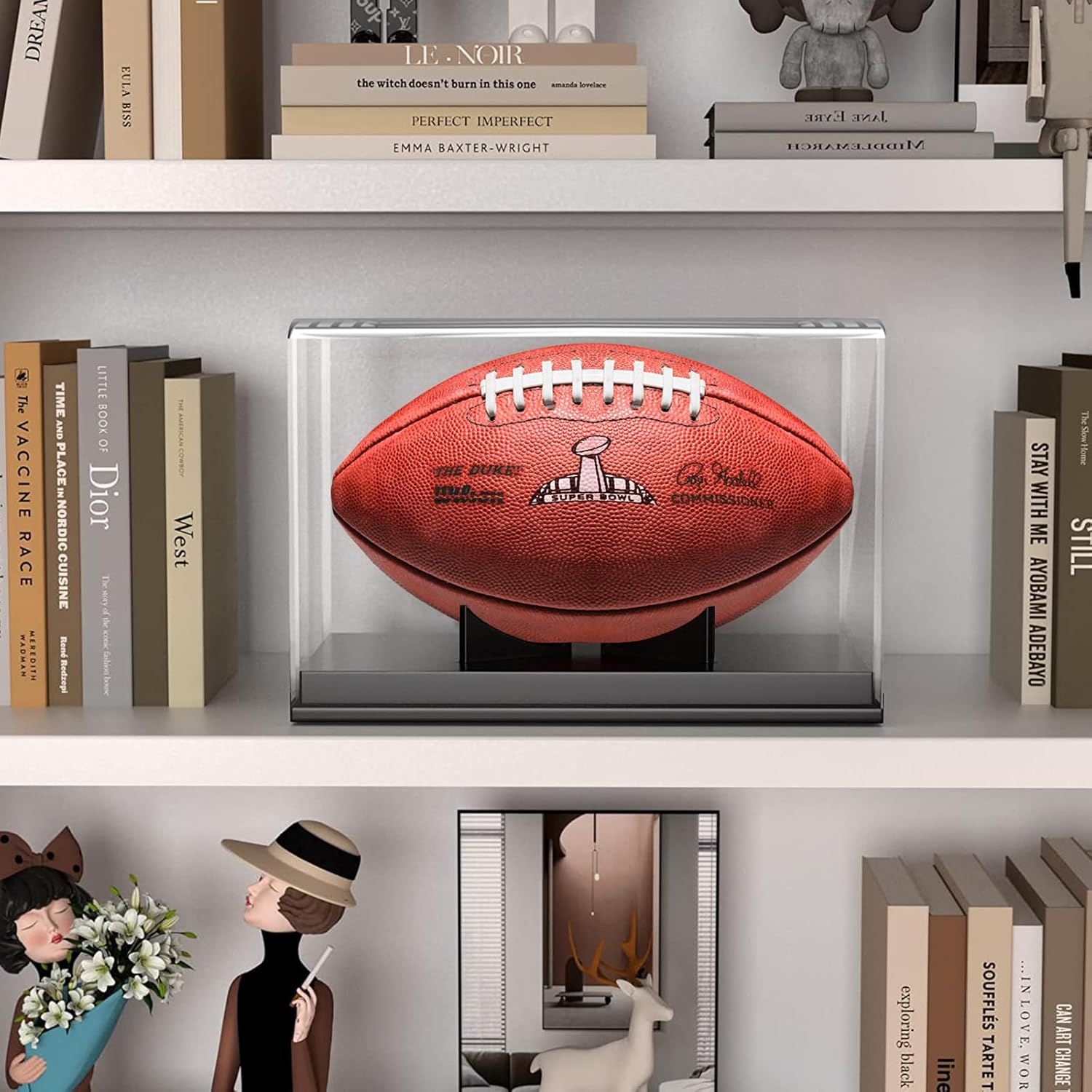 Stylish Design and Clear Visibility: Boasting a sleek and stylish design, the football case display case adds a touch of sophistication to any display area. Its clear construction ensures optimal visibility of your football, making it an ideal option for showcasing your valuable signed football or memorabilia