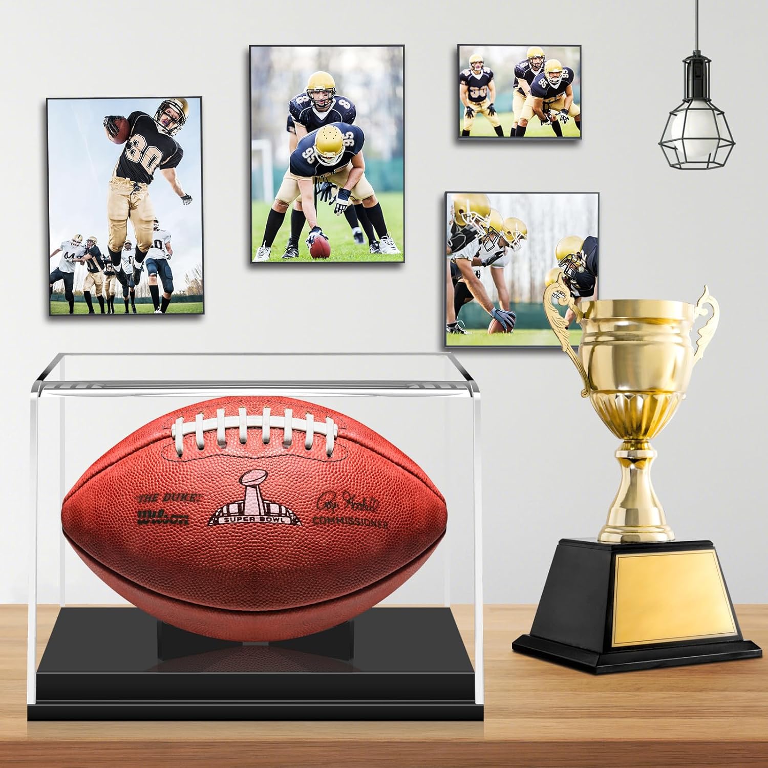 Durable Construction and Easy Use: Crafted from durable acrylic, the football display case ensures the safety and security of your football for years to come. Its effortless setup process allows for easy swapping or updating of your display, making it a convenient option for any football enthusiast