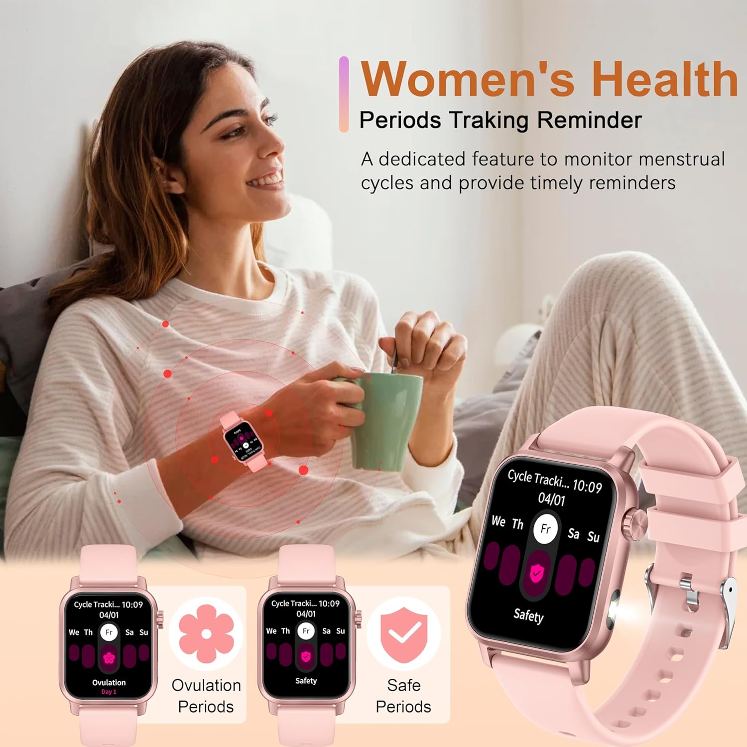 【24/7 Health monitoring】This android smart watch is equipped with advanced sensors that real-time monitor your heart rate, blood oxygen and track your sleep (deep sleep, light sleep and awake), allowing you to know about your health. Additionally, smart watch for android phones offer a menstrual cycle tracking feature specifically designed for women, helping them maintain a healthy lifestyle. All data is clearly displayed in the “H Band” app to assist you in scientifically managing your health. Note: The watch is for reference only and should not be used as professional diagnostic device