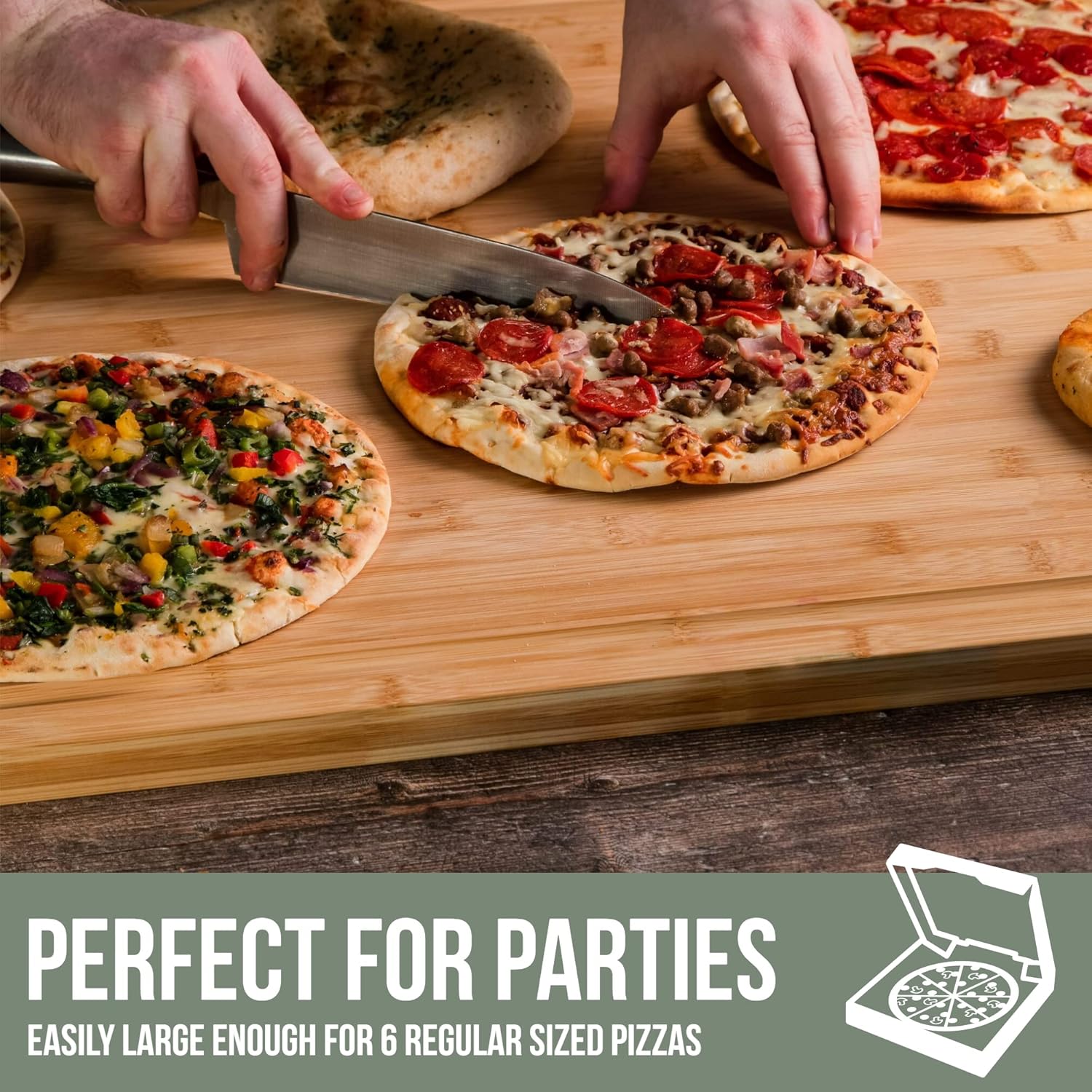 Beautifully Crafted – The Massive Cutting Board brings refined style to any kitchen or dining space. With its clean lines and natural bamboo finish, it’s perfect for serving epicurean spreads, breads and oil or simply elevating your countertop with a piece that’s as functional as it is beautiful.