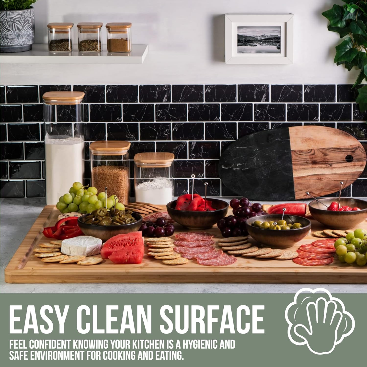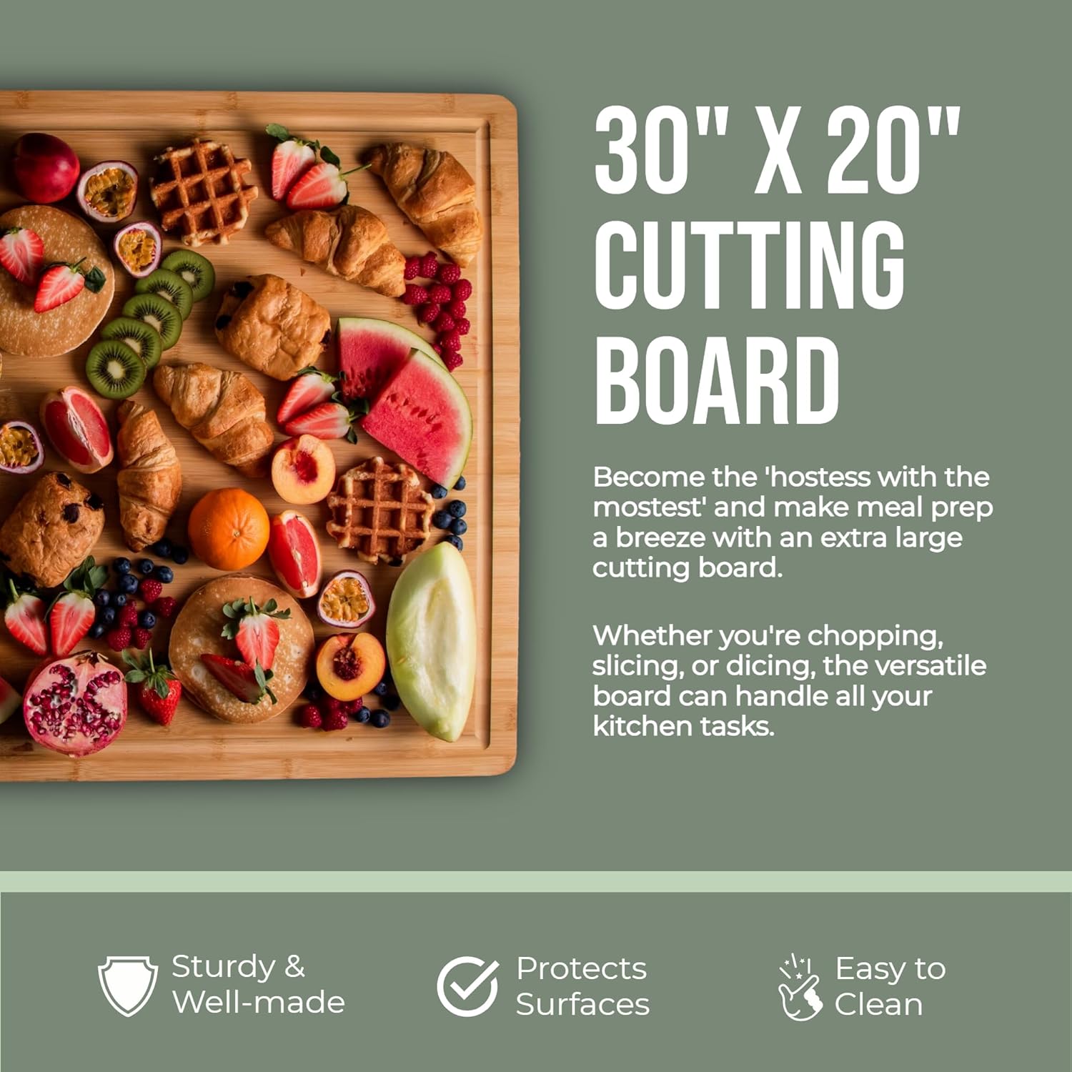 Our 30″ x 20″ extra large cutting board is your secret weapon for creating charcuterie spreads that will make jaws drop! With its expansive size, you’ll have an enormous canvas to artfully arrange an assortment of cured meats, cheeses, fruits, and more. The generous space ensures that every ingredient gets its moment in the spotlight!