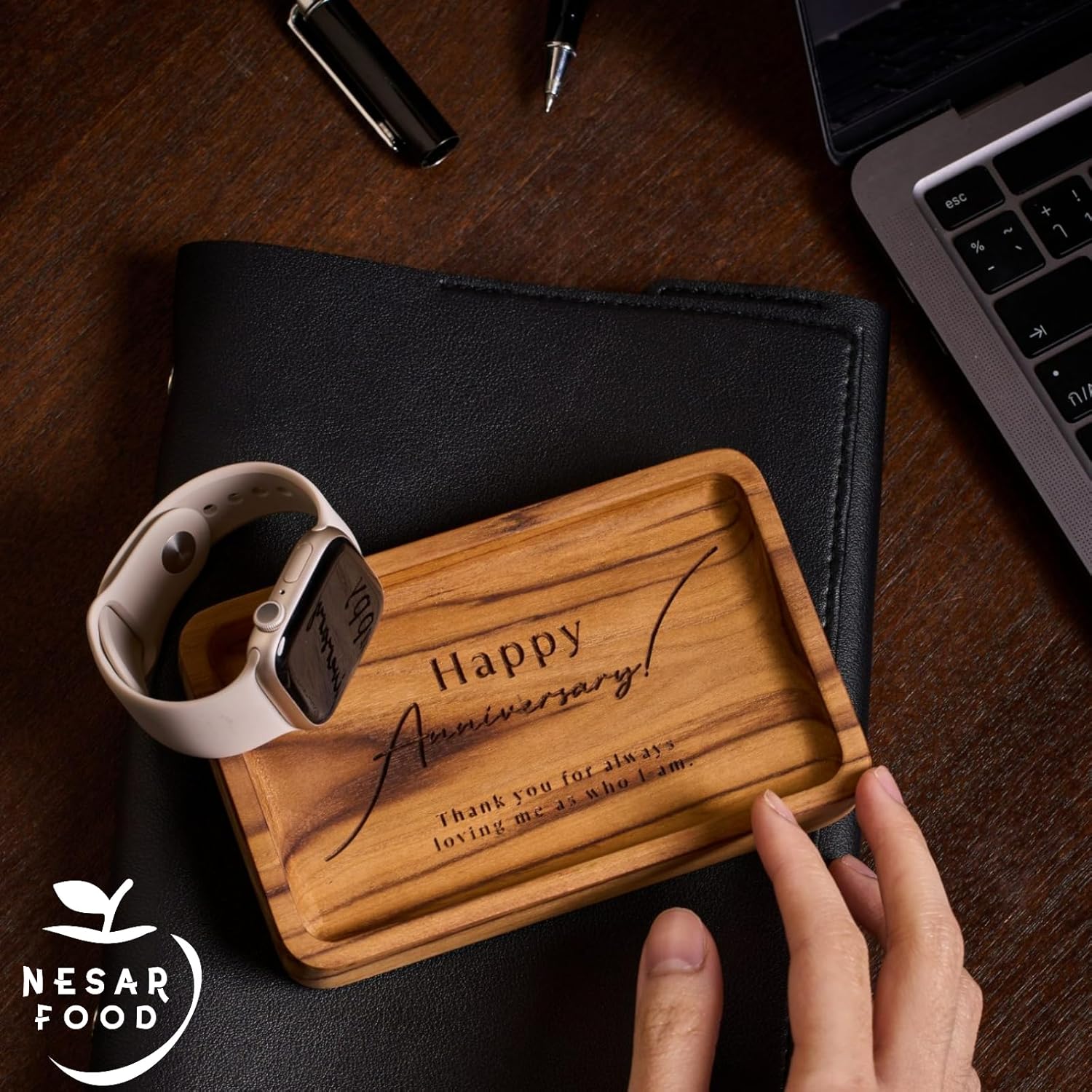 PREMIUM TEAK WOOD: Nesar, Anniversary Gifts, Nesar’s rectangle tray is made from high-quality teak wood, known for its durability, strength, and natural beauty. The wood is carefully selected and processed to ensure a perfect finish and long-lasting use. Teak wood, classified as a medium hardwood, showcases captivating patterns inherent to its nature. Each individual piece boasts a distinct wood pattern, making it uniquely characteristic of teak wood and ensuring high-quality craftsmanship.