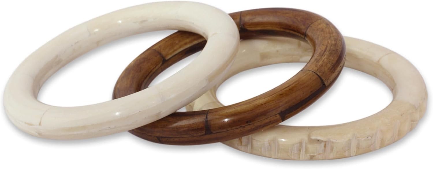 NOVICA Handmade Bangle Bracelets Carved by Hand from Bone (Set of 3)