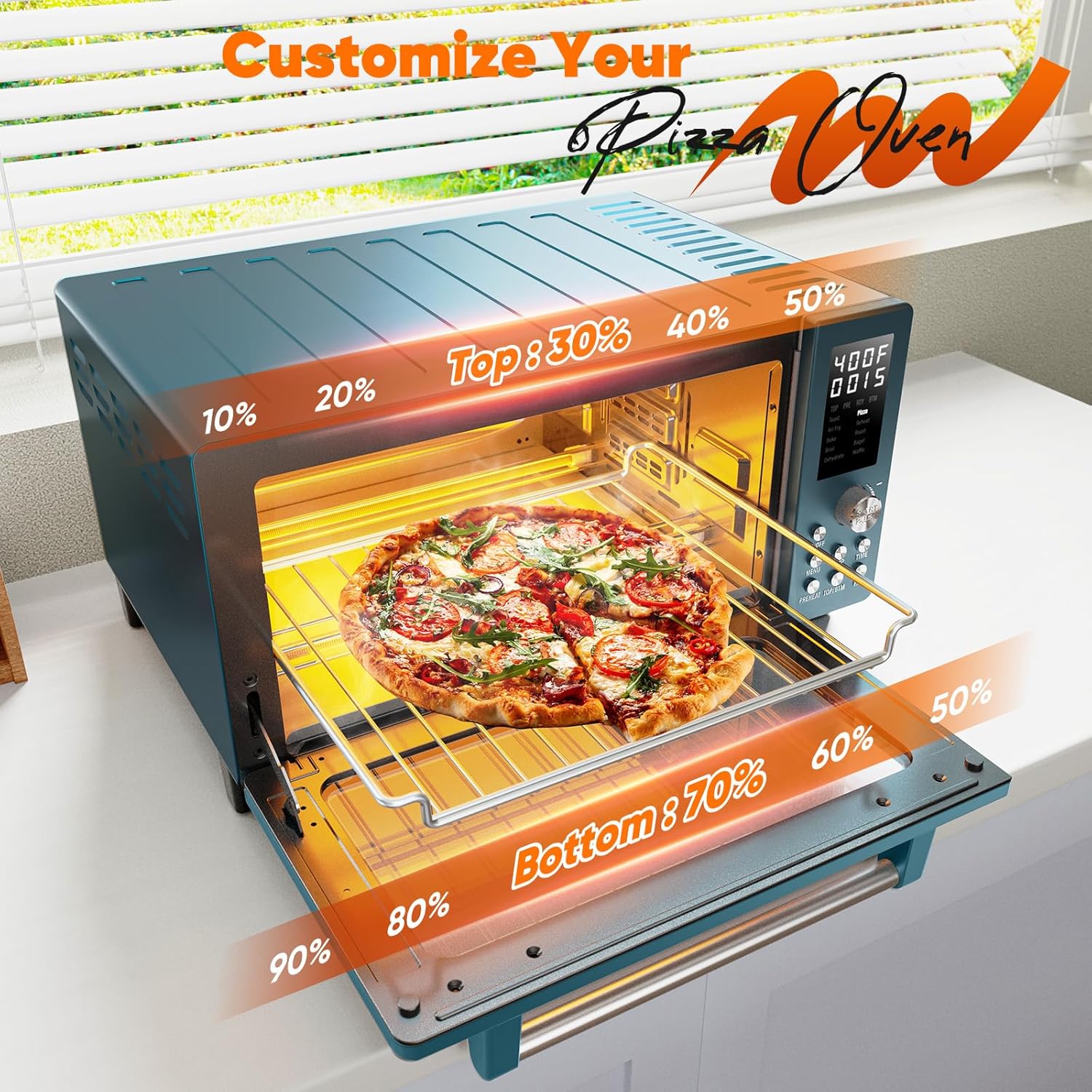 PIZZA OVEN WITH ON-THE-FLY CUSTOMIZATION – Adjust the convection fan speed and the ratio of top and bottom heaters from 0 to 100% to create different heating zones at any time. For the perfect thick pizza, set the bottom heaters to 70% power and the top heaters to 30% for a crispy crust and perfectly melted, cheesy toppings.