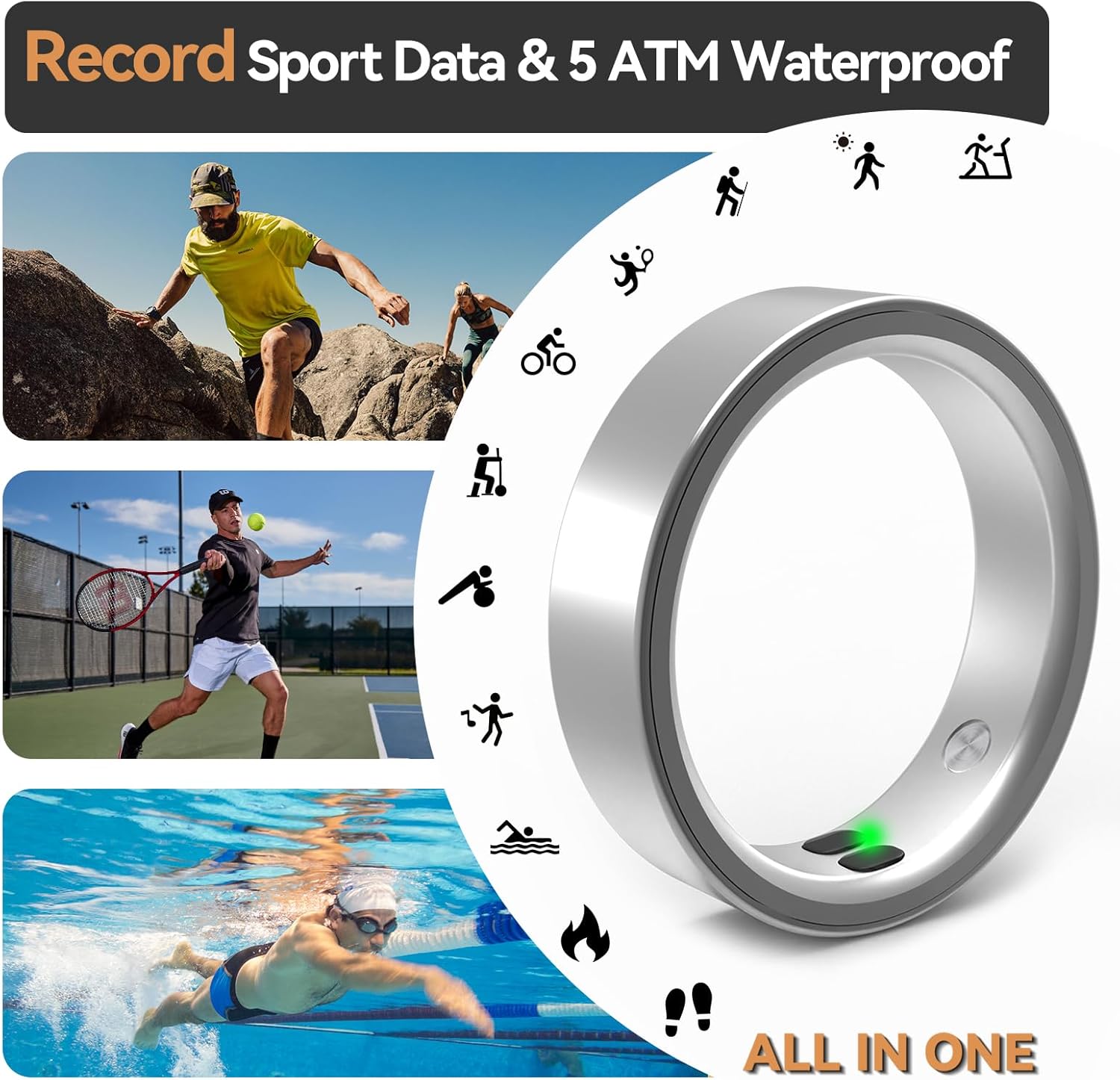 Smart Rings for Women Men,Sleep Tracking Wearable,Fitness Tracker Ring with Step/Heart Rate/Blood Oxygen/Distance/Calorie,Clock Vibration,No Subscription Fee,5ATM Waterproof, iOS&Android(Silver9)