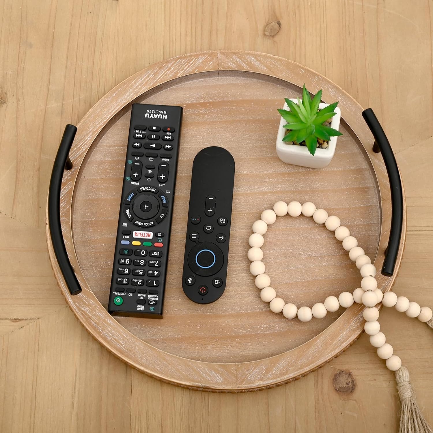 SwallowLiving Brown Wooden Beaded Serving Tray with Handle Decorative Rustic Tray for Coffee Table Farmhouse Round Tray for Kitchen, Living Room and Bedroom