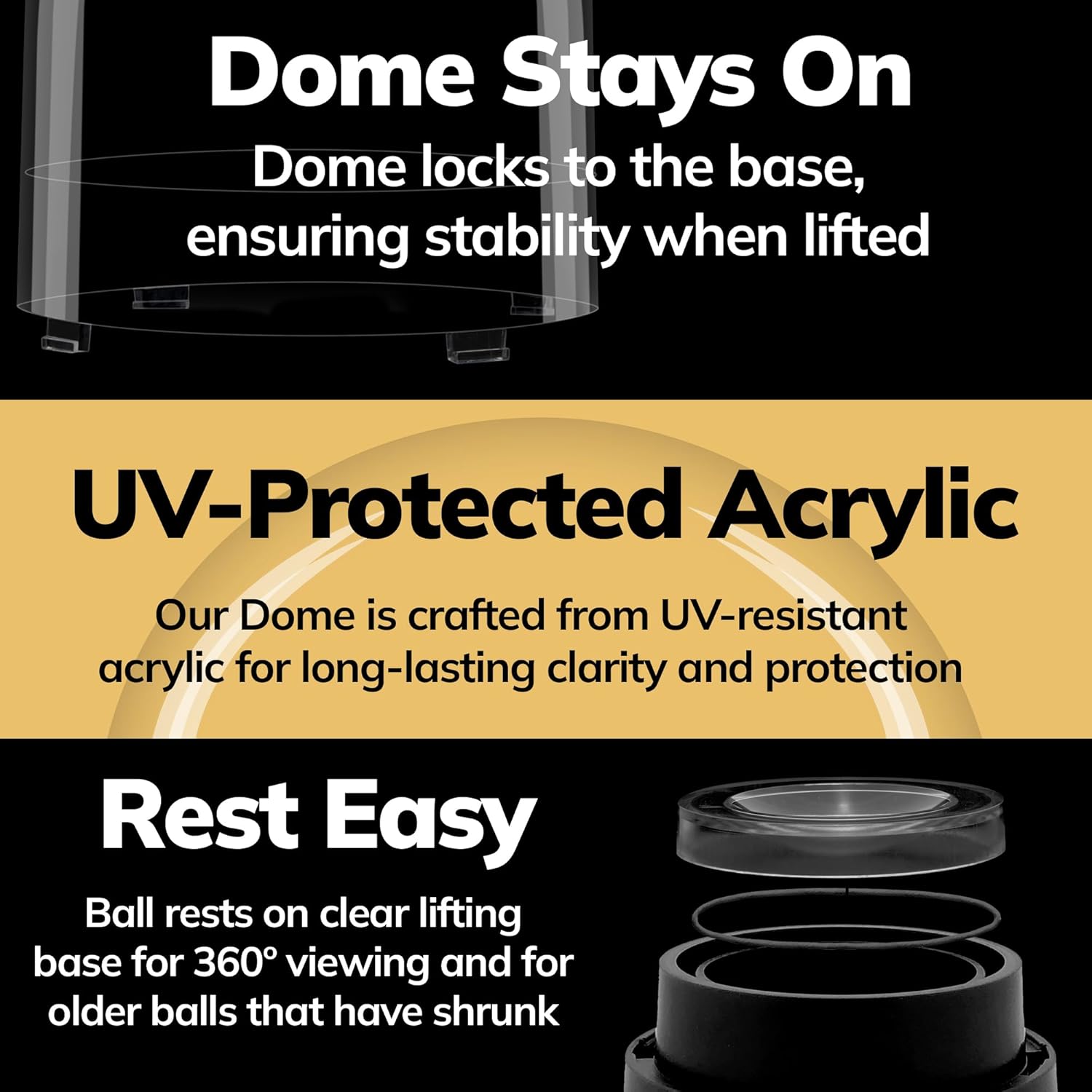 Fits older baseballs: An ingeniously crafted base elevates with the help of a provided rubber gasket (use only if required), ensuring even shrunken vintage baseballs are securely held and prominently displayed within the dome.