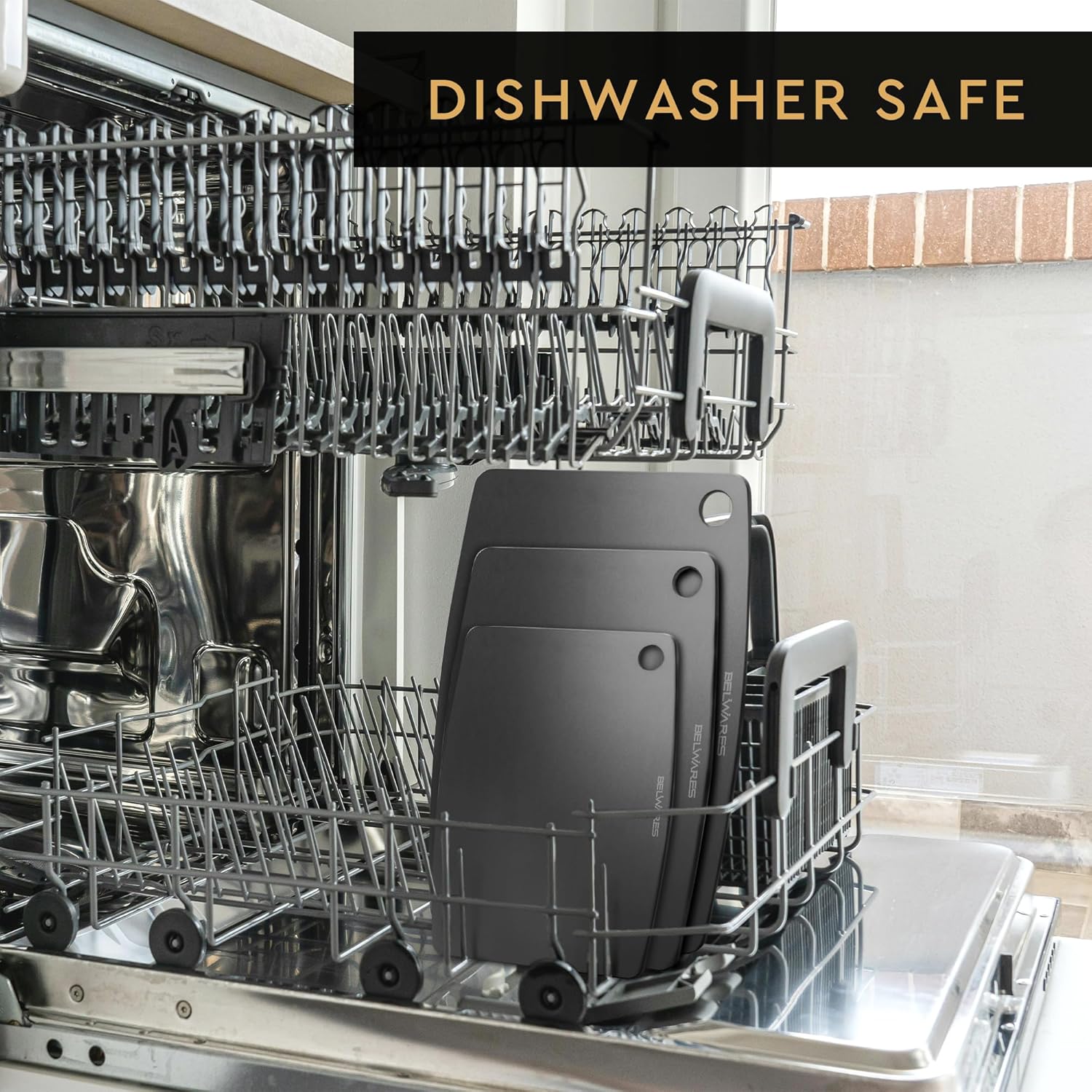 DISHWASHER SAFE CUTTING BOARDS: You’ll love that this fiber wooden cutting board for kitchen is dishwasher safe. Even if you hand wash, it takes no effort to clean, since it’s non-porous, lightweight and thin.