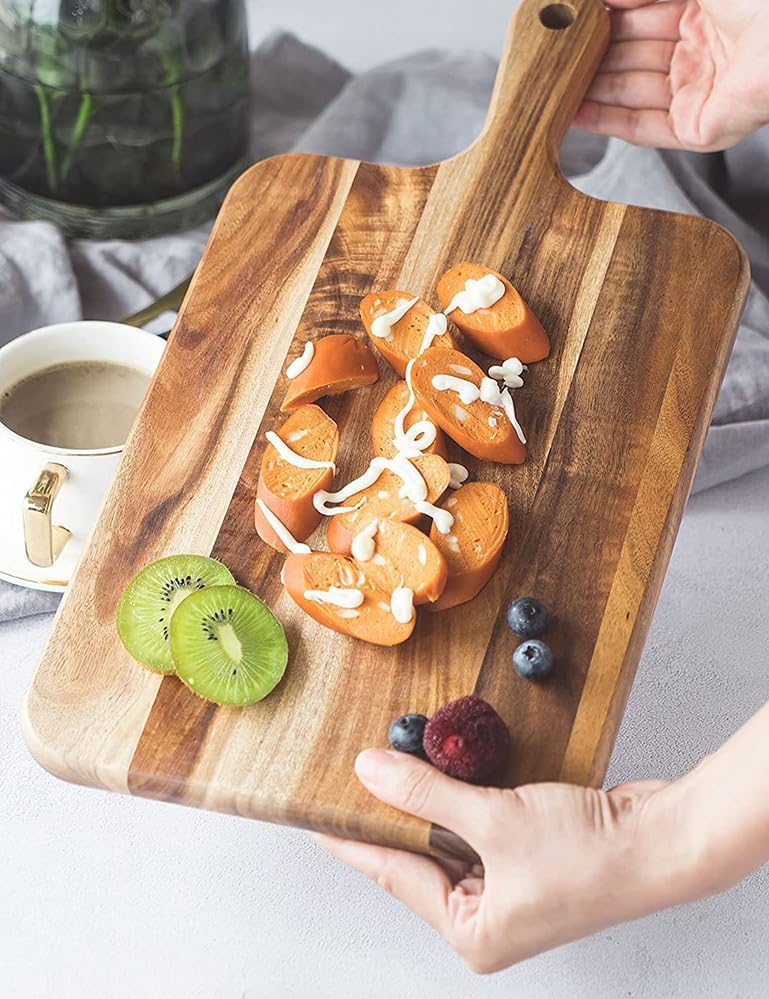 Versatile: Wooden cutting boards suitable for chopping meat, cheese, fruits, and vegetables in the kitchen.
