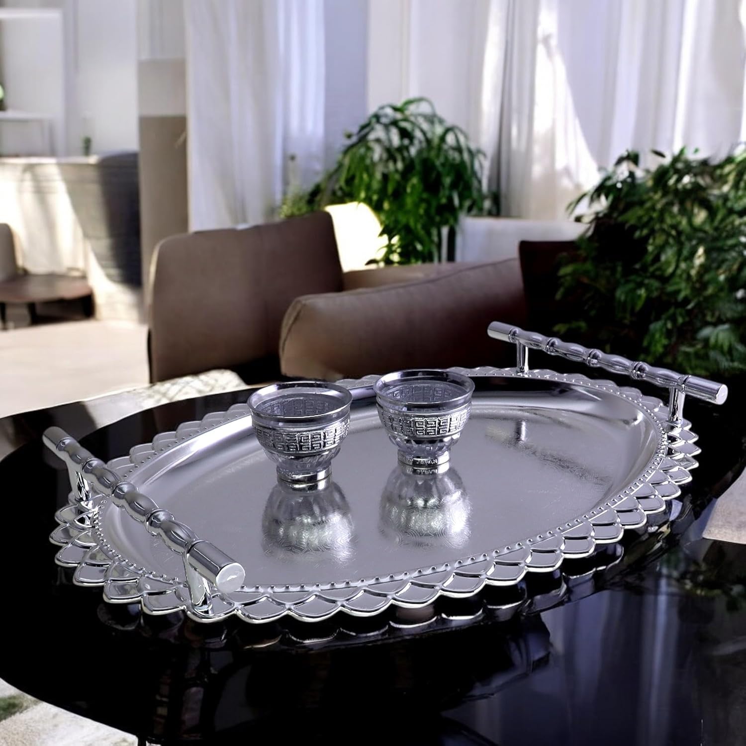 An effortlessly charming decorative piece at an affordable price. Featuring a chrome-plated, high-quality finish with a mirrored reflection, it’s perfect for the holidays or everyday use. This multi-purpose serving tray is ideal for buffet and catering services.