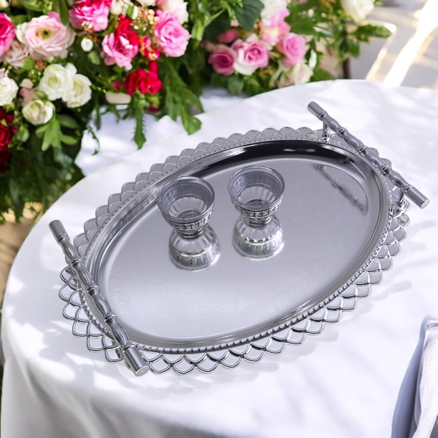 An effortlessly charming decorative piece at an affordable price. Featuring a chrome-plated, high-quality finish with a mirrored reflection, it’s perfect for the holidays or everyday use. This multi-purpose serving tray is ideal for buffet and catering services.