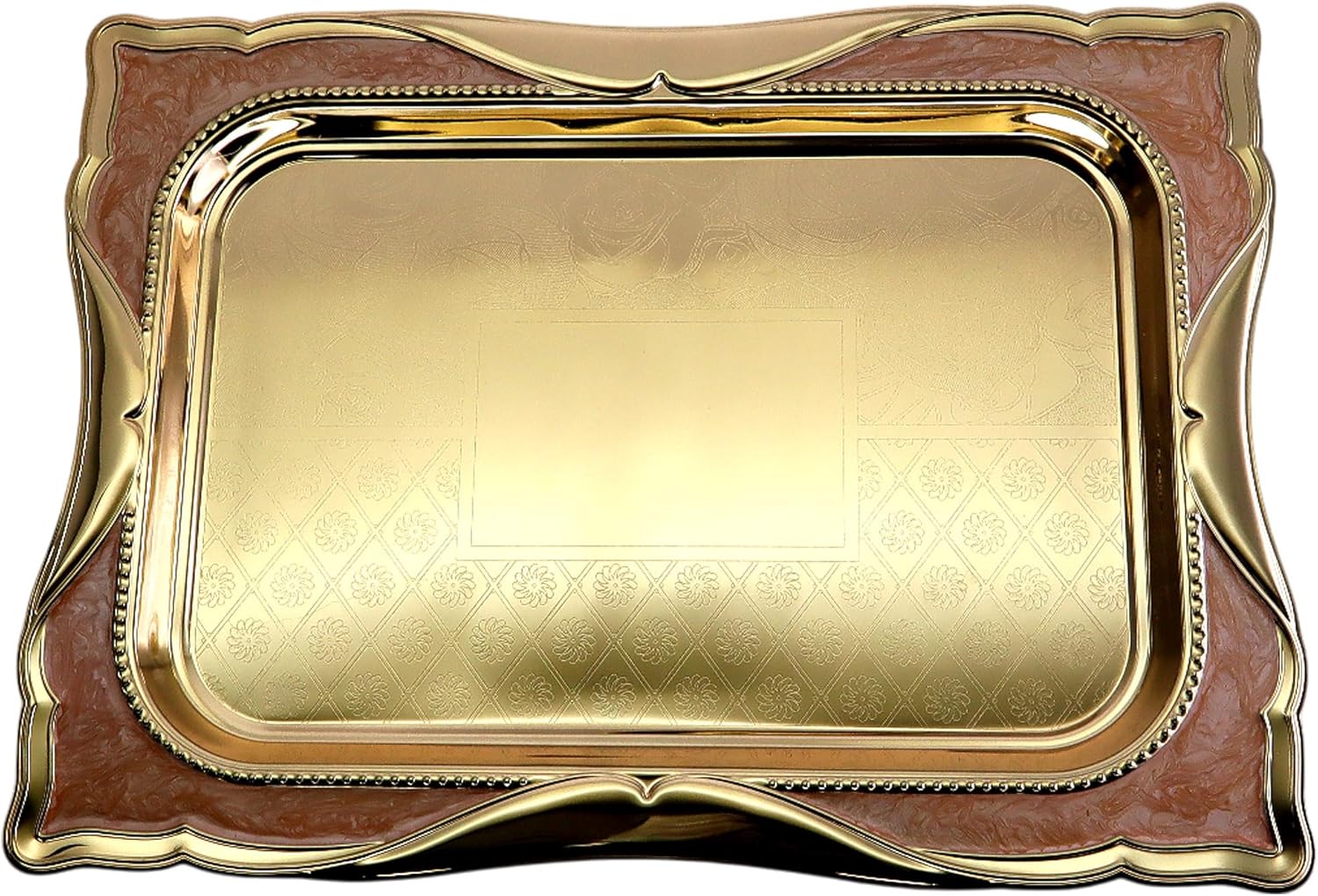 Pack of 1 elegant serving trays, outside dimension: 44 cm x 32 cm (or 17.3 inch x 12.6 inch), inside dimension: 33.2 cm x 21 cm (or 13.1 Inch x 8.3 Inch). (Tray size only; handle size is NOT included.)