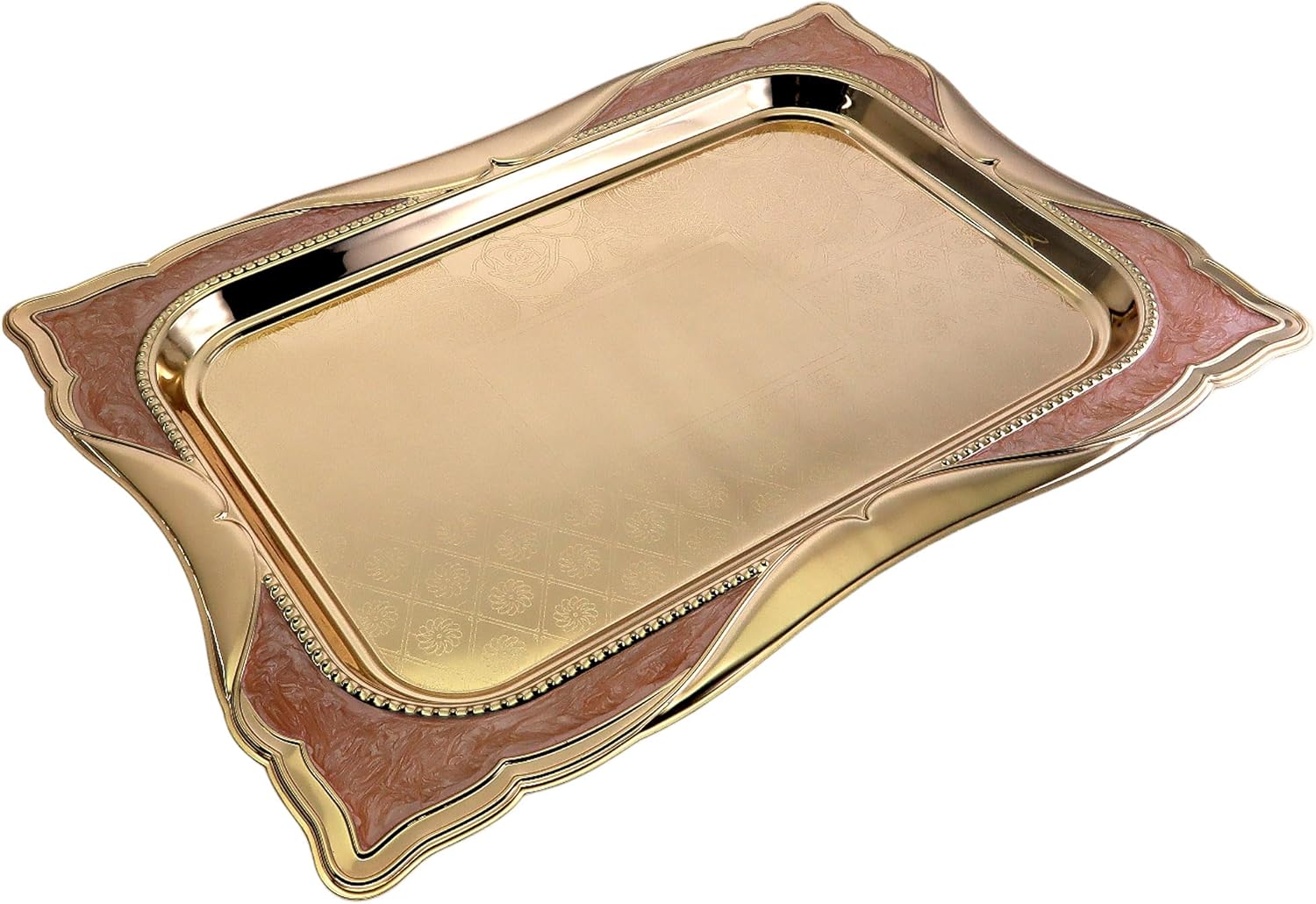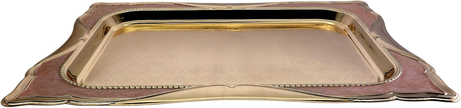 Pack of 1 elegant serving trays, outside dimension: 44 cm x 32 cm (or 17.3 inch x 12.6 inch), inside dimension: 33.2 cm x 21 cm (or 13.1 Inch x 8.3 Inch). (Tray size only; handle size is NOT included.)