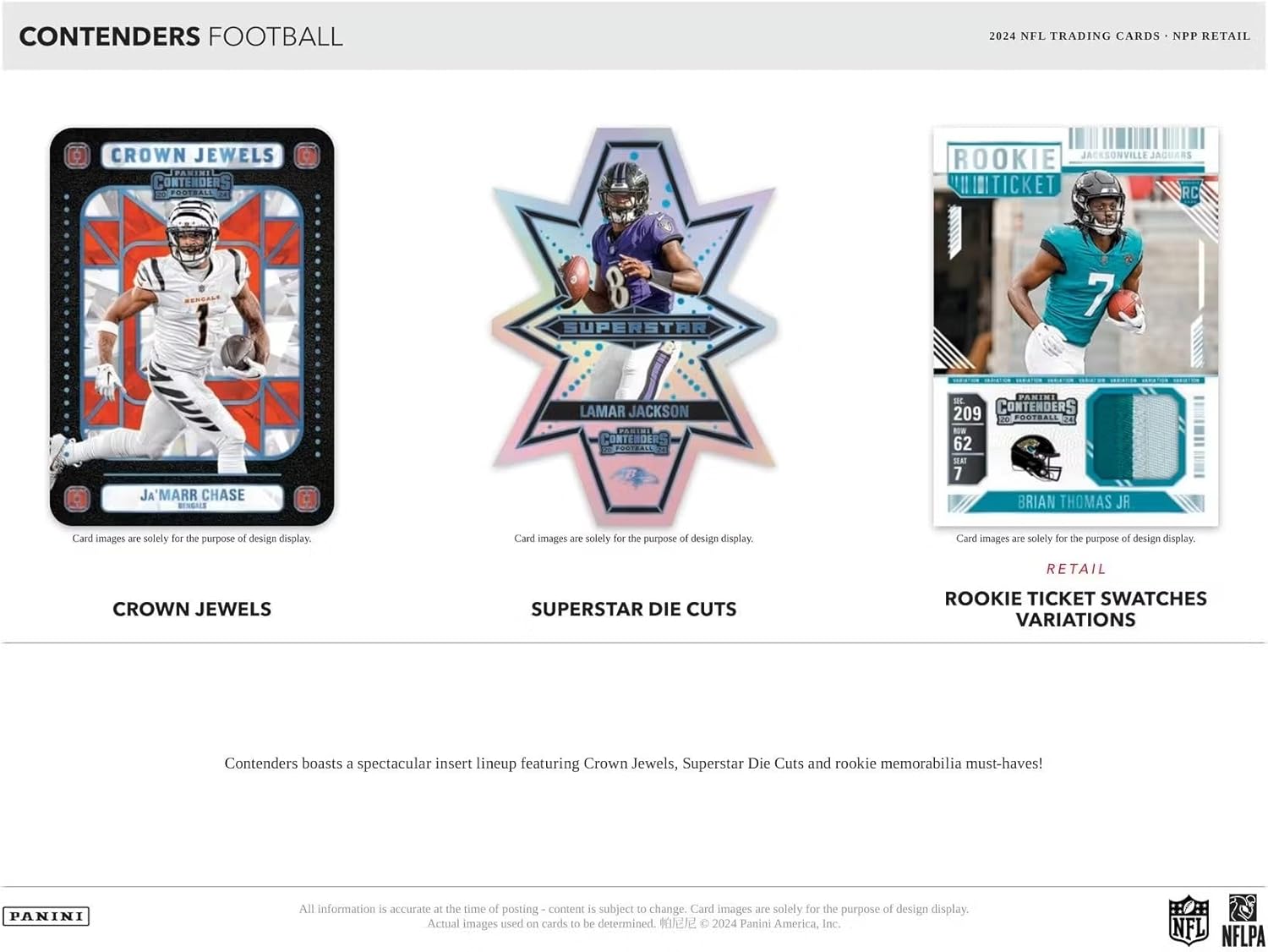The juggernaut that is Contenders Football returns for the 2024 season, boasting its trademark arsenal of collection-making content headlined by Rookie Ticket autographs, a spectacular array of parallels, must-have inserts and so much more.