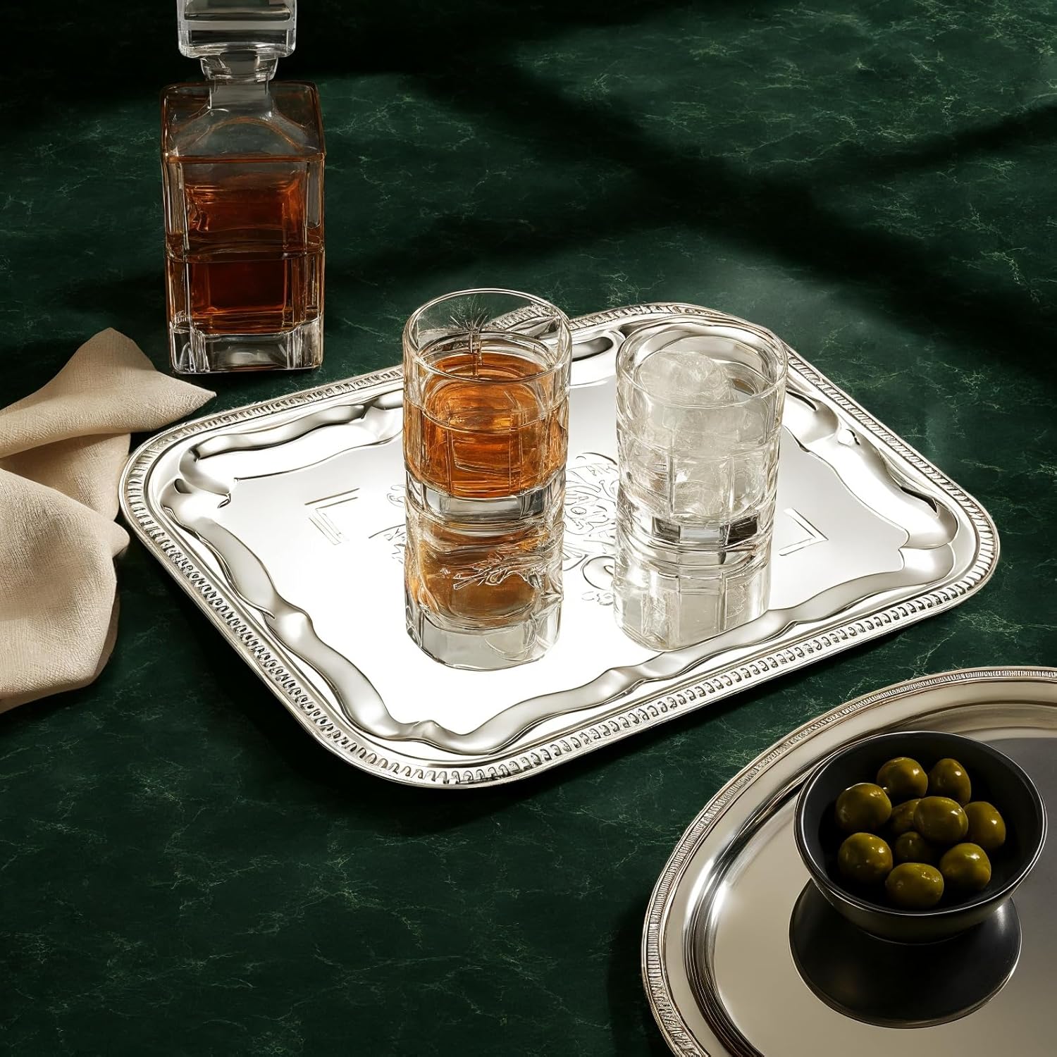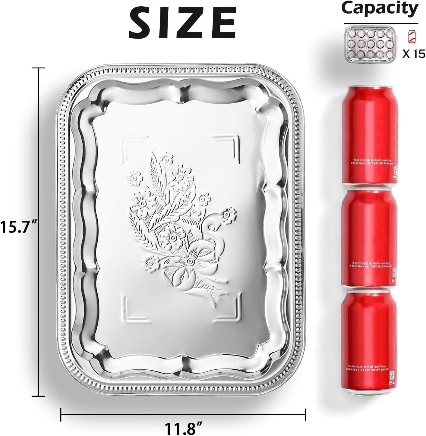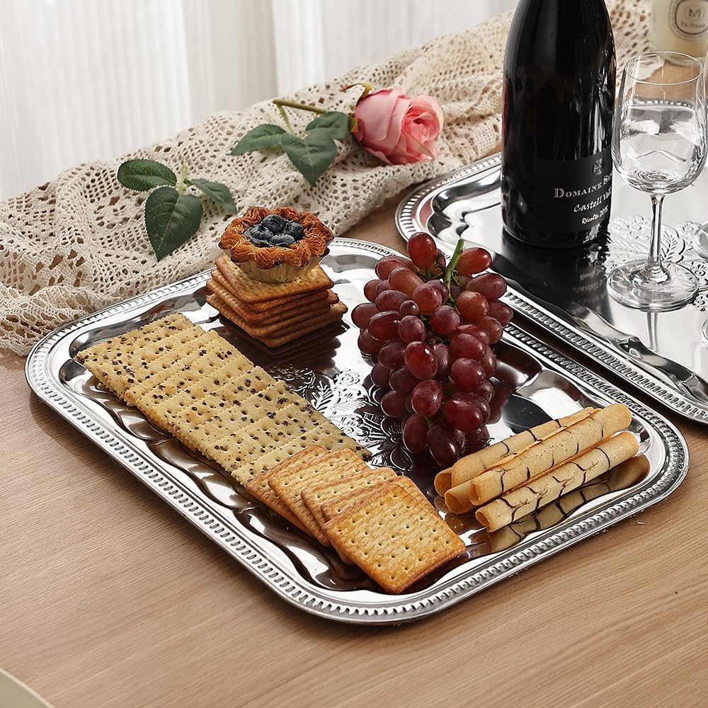VARIOUS DISPLAY PLATTERS – These large silver serving trays are the suitable size to display fruits, whiskey, cookies, drinks, cookies, appetizers, cooked food, snacks, desserts, party supplies, kitchen utensils and more.