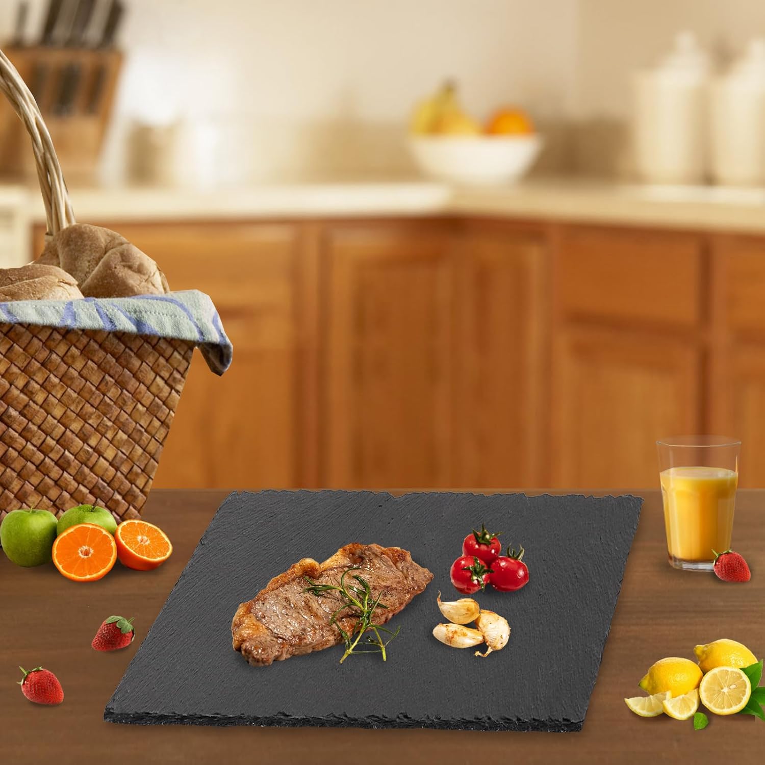 Convenient & Reusable:Slate boards with no-slip rubber pads underneath to assist them to be placed on the table in a balanced manner and have a sturdy surface to prevent scratching. Easy to clean up, if there is oil stain after use, please rinse with water or mild soap, just wipe them with a wet cloth and air dry, good for reusing, environmentally friendly and healthy