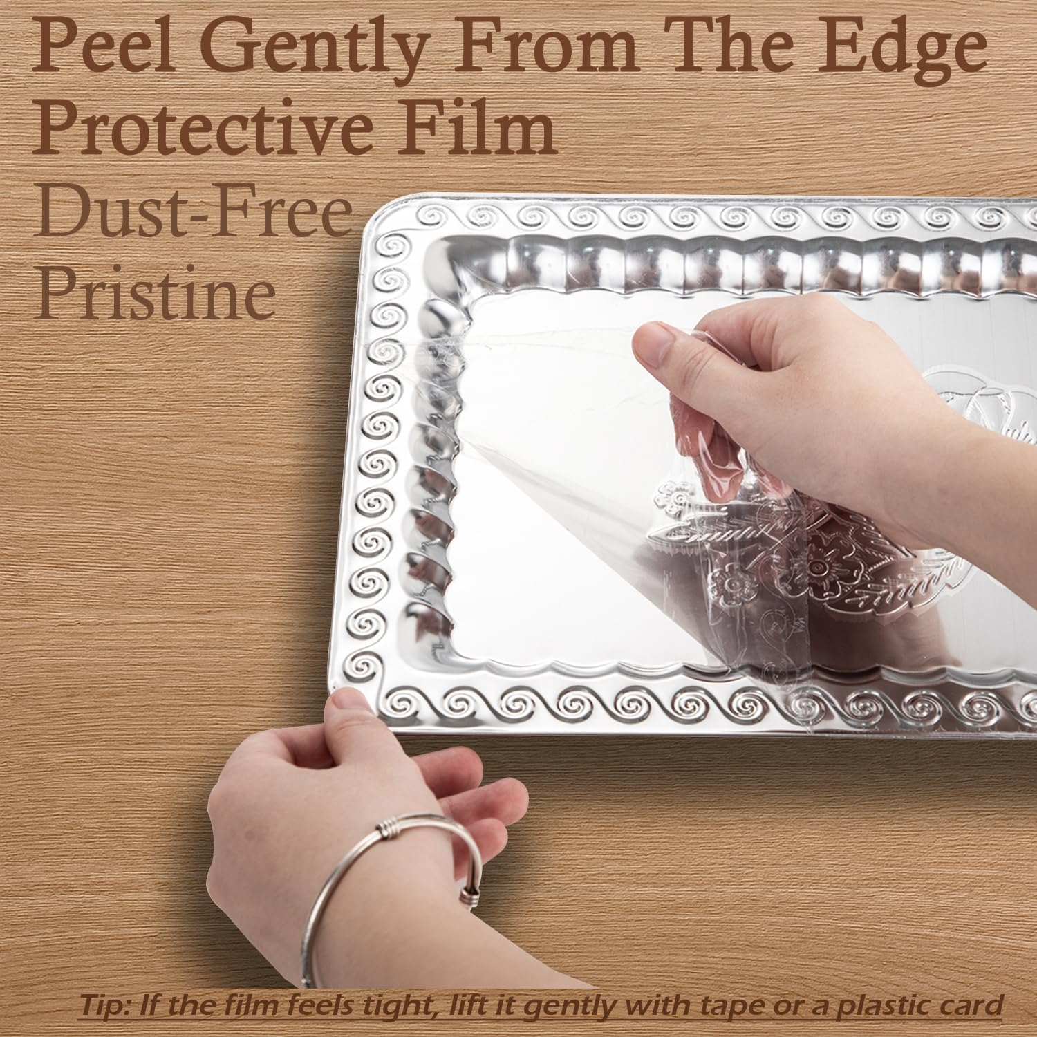 PEEL-OFF DUST PROTECTOR – Each tray is covered with a tight, dust-proof film to keep the surface spotless during shipping. The film is firmly attached for full protection — please peel it off slowly from the edge before use to reveal the mirror shine.