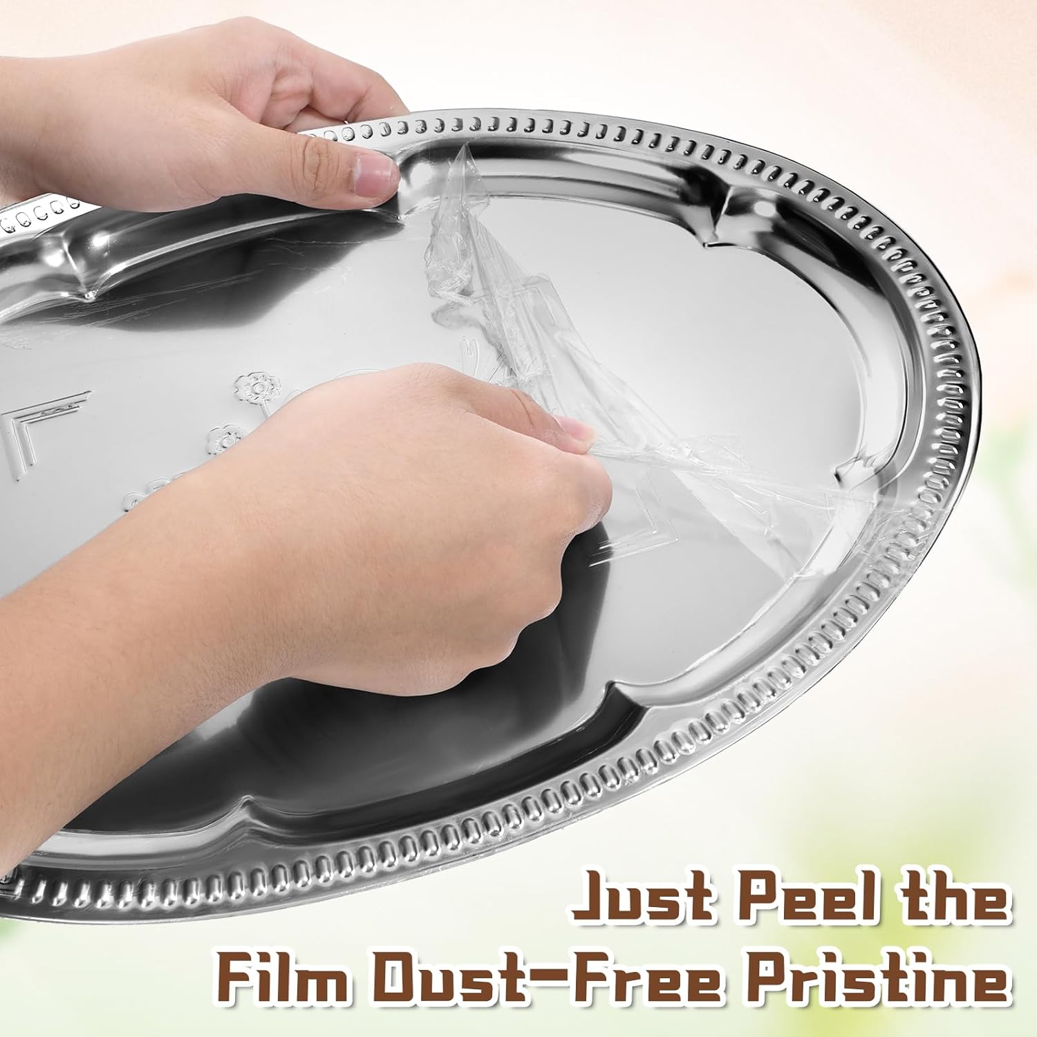 Space-Saving Stacking & Cleanliness, Easy Care: These floral eravnged trays nest neatly to maximize cabinet space (reducing clutter vs. bulkier alternatives) and come with a removable peel-off dust protector for pristine hygiene until use. They’re dishwasher-safe or easy to clean by hand, making post-meal cleanup hassle-free for busy households, caterers, or event hosts