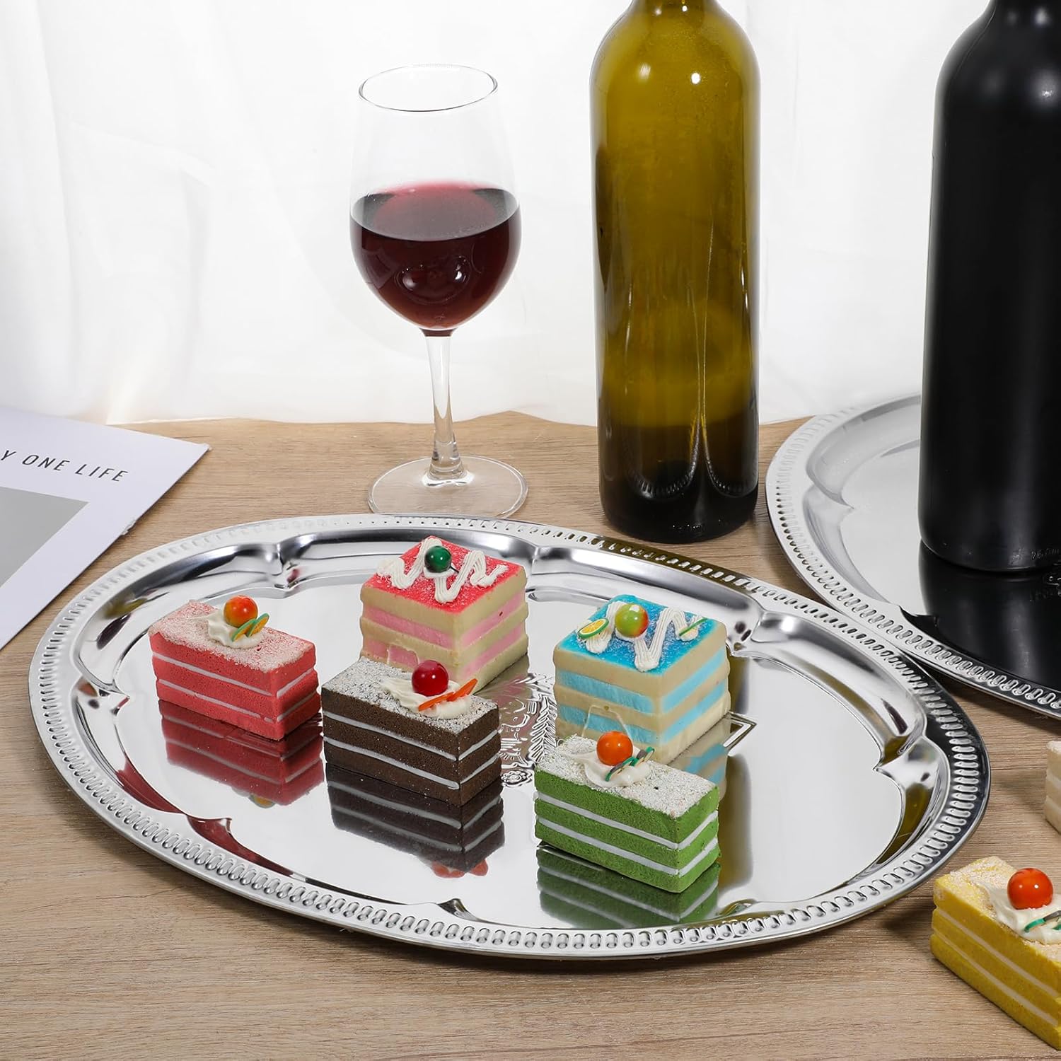 Food-Grade Stainless Steel for Safety & Longevity: Crafted from high-quality stainless steel, these silver trays are harmless, non-toxic, and resistant to rust, impact, and high temperatures. Smooth edges prevent scratches, and the mirror-polished surface boosts aesthetics, complementing any dining set. They’re durable enough for long-term home or light commercial use, ensuring safe, reliable food contact