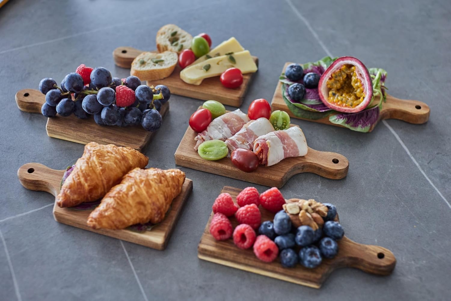 Acacia Charcuterie Boards – Set of 6 Large Mini 7″ × 3.35″ Wooden Cheese Paddles, Laser Engraving Blanks, Café & Event Serving Trays