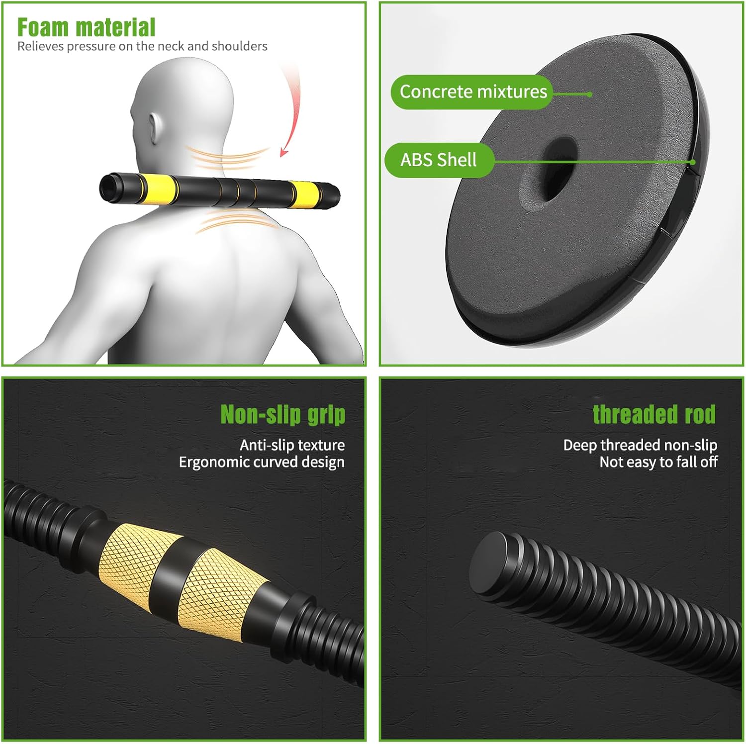 【Non-slip Dumbbell Bar】The connecting bar is made of 0.23 inch thick steel pipe + 0.8 inch thick high quality foam. Ergonomically designed to fit your neck, non-slip and sweat-absorbent, soft and breathable, its shape perfectly fits your neck for added comfort.