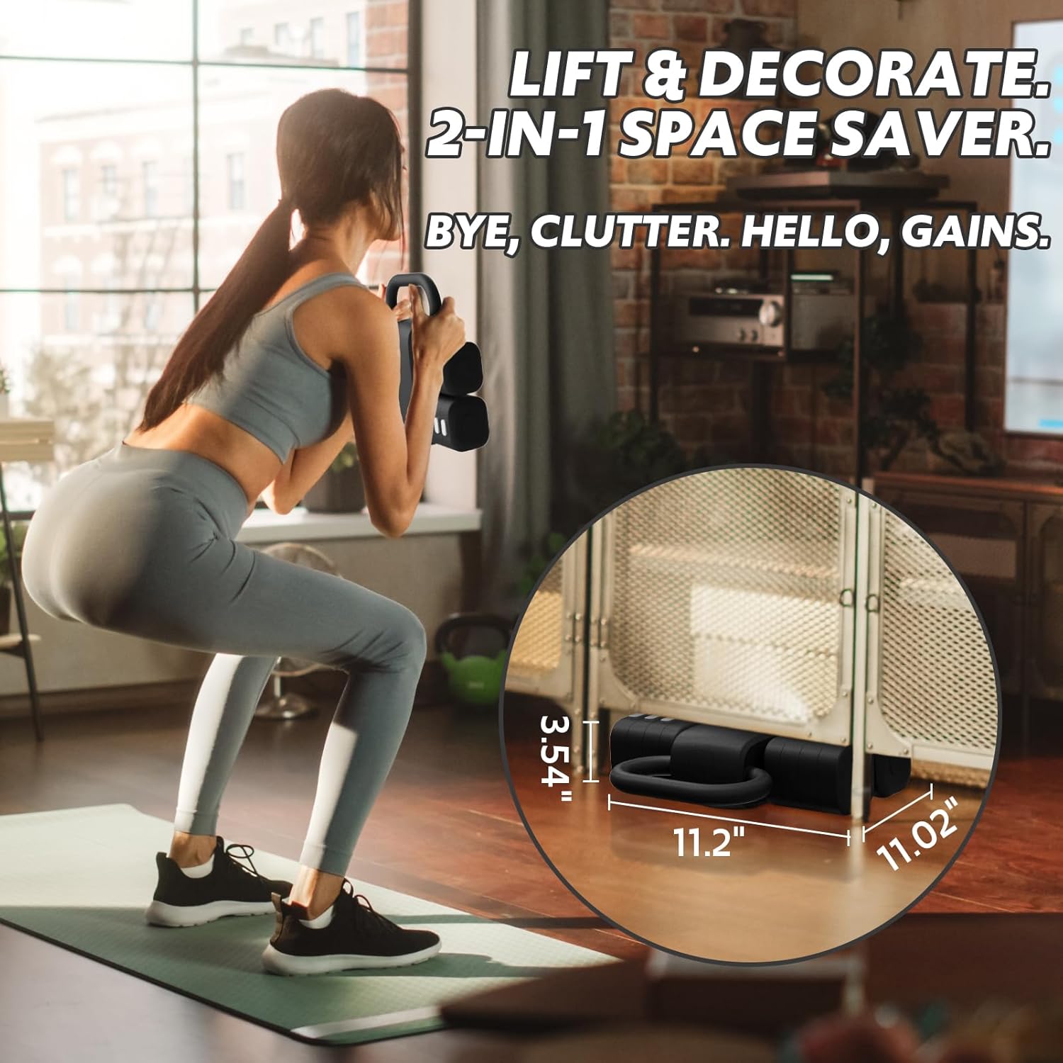 ✔ Dual-Function Ergonomic Grip – Textured dumbbell handles ensure a firm hold, while the wide kettlebell base supports comfortable swings. The anti-slip sponge pad reduces noise and floor damage.