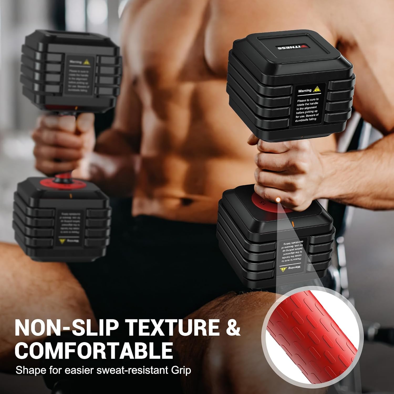 Your Space-saving Home Gym: Rendpas Adjustable Dumbbells Set of 2 are designed to be weight set for home gym, making them ideal for fixing in small workout spaces; The heavy-duty base offers a shield to minimize the impact damage on the floor/carpet/weight plates; Get free weights, such as adjustable weights dumbbells set to secure a time-efficient, smooth, and interruption-free workout session