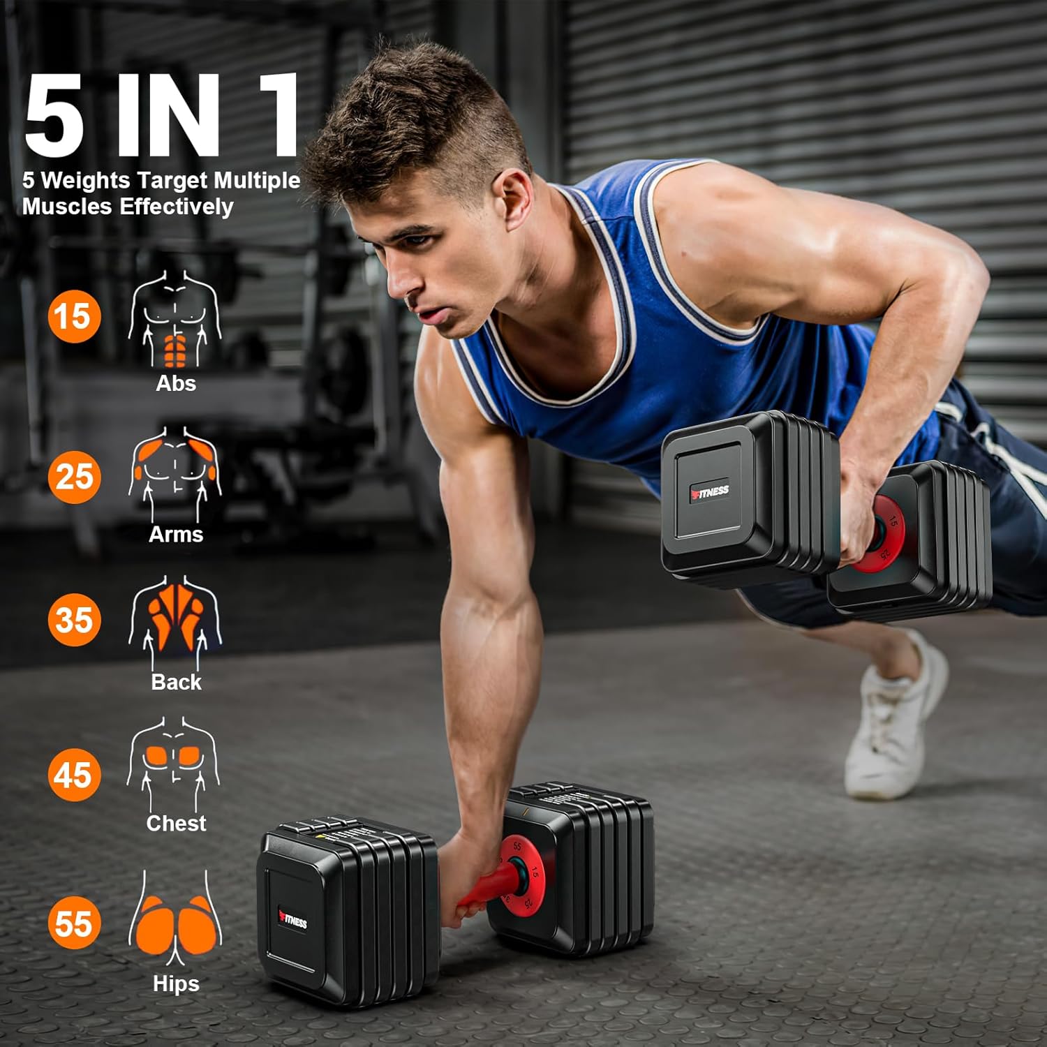 Rendpas Adjustable Dumbbells Set of 2, 25/55LB Square Weight Dumbbell Set, 5 in 1 Free Dumbbell Set with Anti-Slip Texture Handle, Weight Set For Home Gym Suit both Men and Women