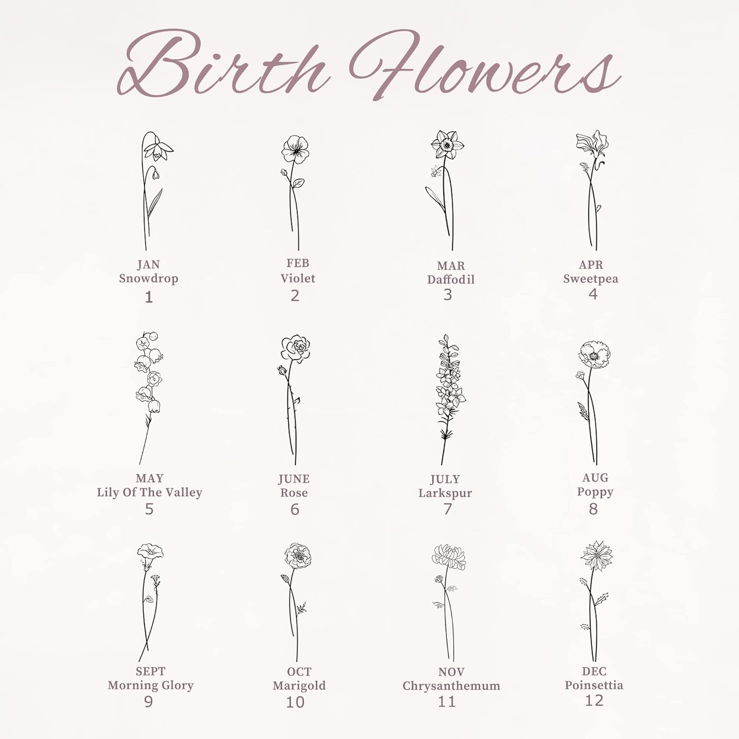 Birth Month Flower Necklace. 12 blooming flowers represent the 12 months of a year, snowdrop, violet daffodil, sweetpea, lily, rose, larkspur, poppy, morning glory, marigold, chrysanthemum, poinsettia. Select your favorite one to make a personalized jewelry gift.Birthday Gift for Her. It is a special birthday gift for mom, sisters, friends, girlfriends. It is also a child’s birthday gift for a new mom.Love Connection among Mom & Children, Family, Friends, and Couples. Surprise your loved one with this special and elegant personalized jewelry gift.