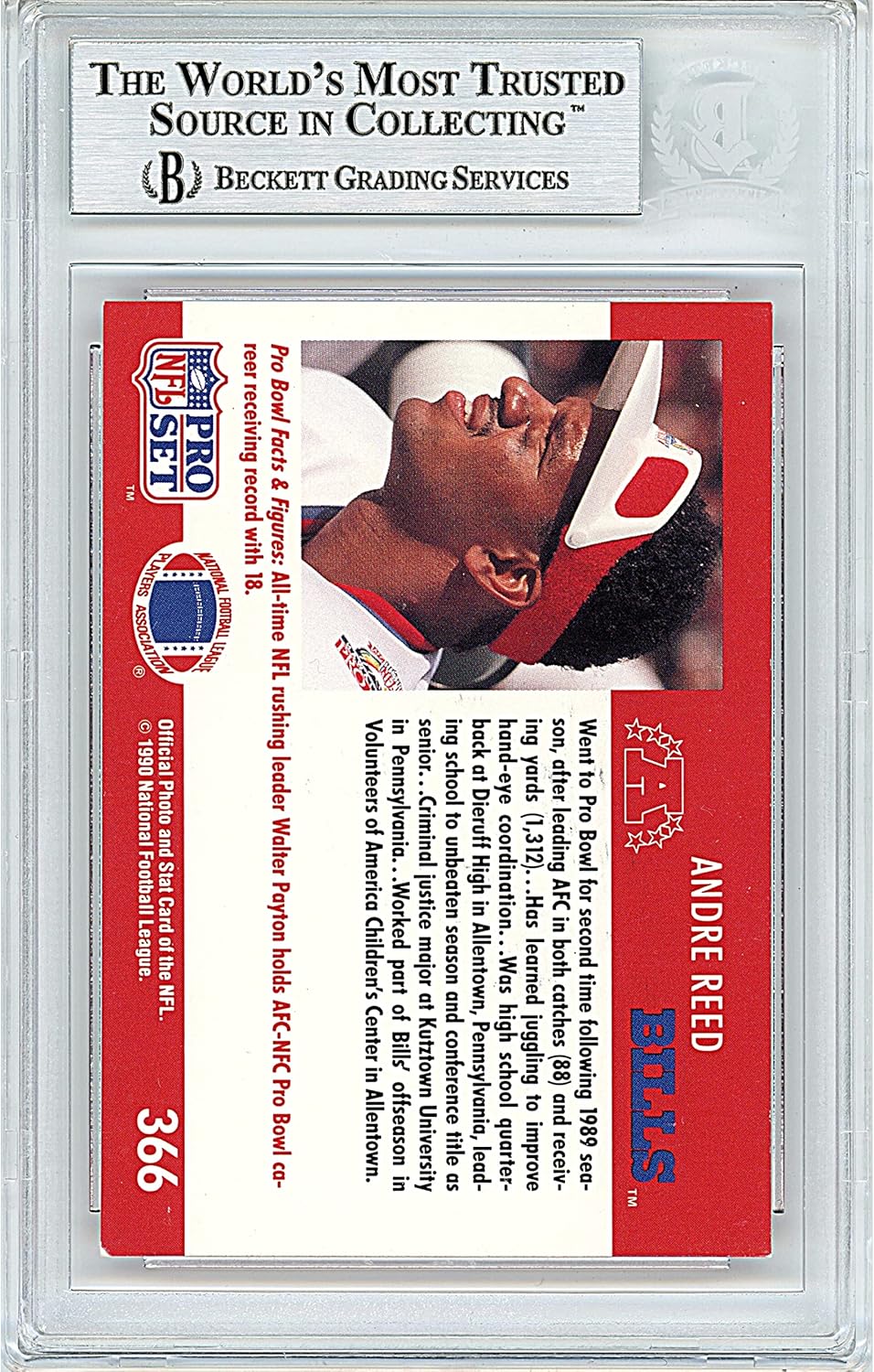 Andre Reed Autographed Football Card, 1990 Pro Set Pro Bowl #366, Beckett Authentic Autograph Slab, Buffalo Bills Signed Sports Memorabilia