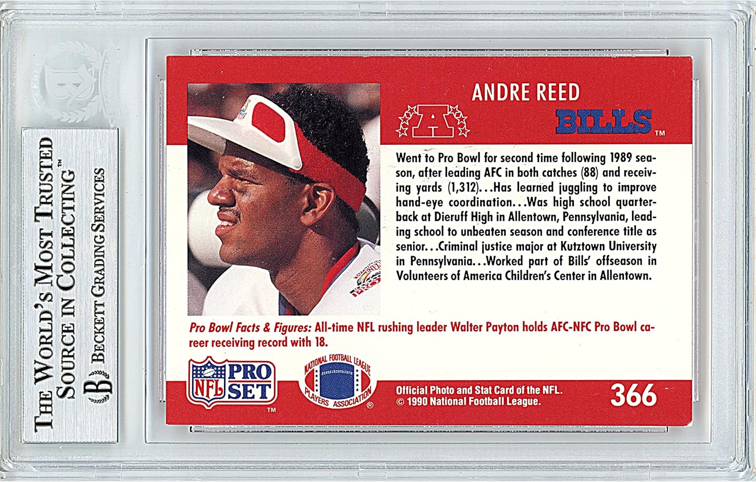 Andre Reed Autographed Football Card, 1990 Pro Set Pro Bowl #366, Beckett Authentic Autograph Slab, Buffalo Bills Signed Sports Memorabilia