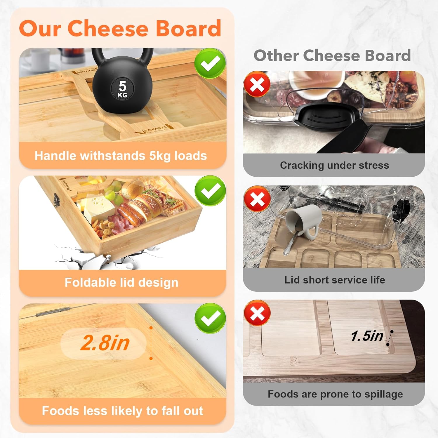 The Perfect Gift: Comes in Elegant Gift Box ,This cheese board is ideal for home chefs or friends who love hosting gatherings. As a gift, it’s highly creative. You can give it as a wedding gift, housewarming gift,birthday gift, or even a gift for Mom. The recipient will be amazed by its practicality and impressed by its exquisite design.
