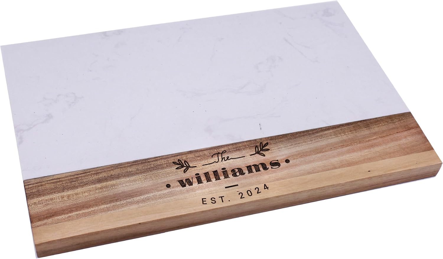 This custom engraved sturdy premium marble and acacia serving board comes complete with leather hanging strap. The beautiful set is far from cheesy, being the perfect accessory for your wine nights, house parties or even the ideal gift for a friend!