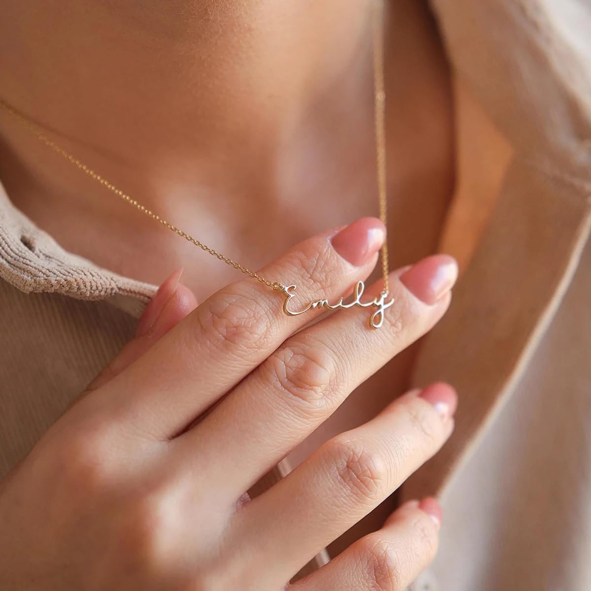 Make any occasion special with this exquisite personalized name necklace featuring delicate script lettering. Crafted with meticulous attention to detail, the dainty pendant showcases custom names in an elegant flowing style. Available in stunning 18K gold plated finish, this necklace adds a personal touch to any outfit. The versatile chain comes in multiple lengths from 14 to 22 inches to suit your preferred style. Perfect as a thoughtful gift for weddings, birthdays, anniversaries, or Christmas, this customizable piece makes a meaningful statement. The slim, sophisticated design works beautifully for everyday wear while still feeling special enough for momentous occasions. Ideal for bridesmaids, best friends, or loved ones, this personalized necklace creates a lasting memento. The high-quality materials ensure durability, while the classic script design remains eternally stylish. Each necklace is carefully crafted to order, making it a unique and heartfelt gift that will be cherished for years to come.