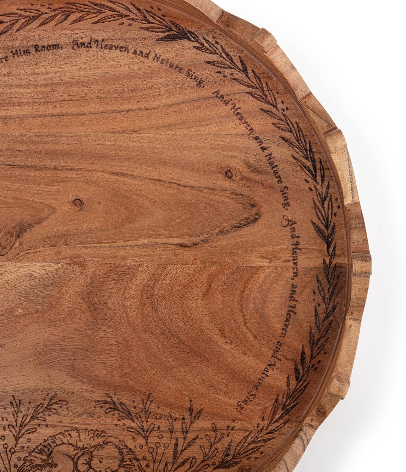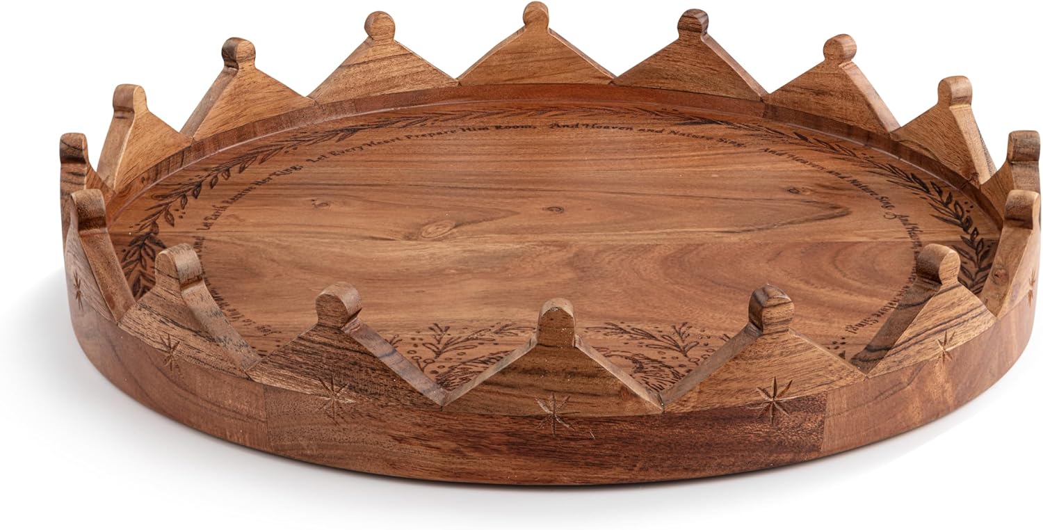 DEMDACO Christmas Journey Natural Brown 16 Inch Diameter Acacia Wood Faith Religious Engraved Decorative Crown Shape Round Handmade Holiday Entertaining Serving Tray, Joy to The World